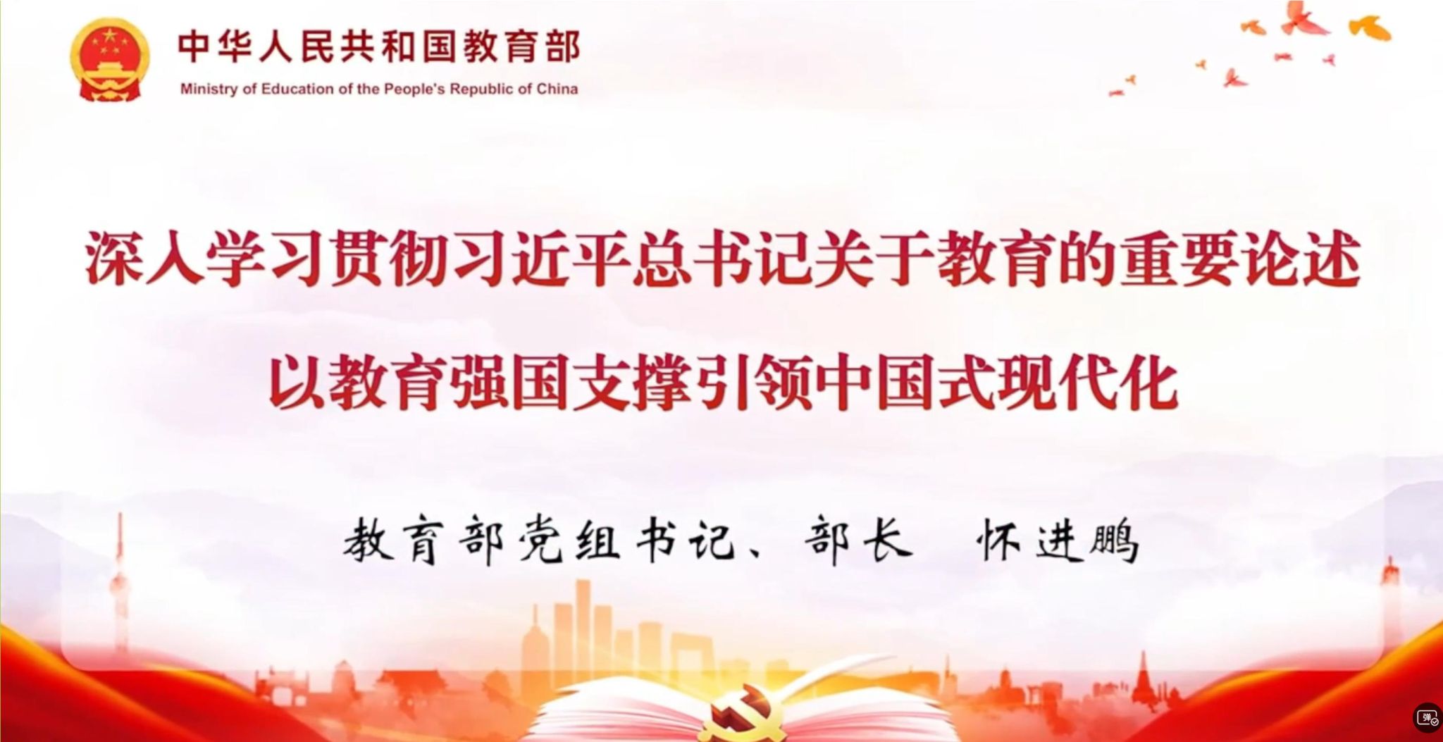 怀进鹏在报告中,从教育强国的观念与实践,形势与启示,以及路径与方法三个层面深入阐述了教育强国对中国式现代化的基础支撑作用。他表示,在中国式现代化大背景下,要全面把握教育强国面临的“时与势”,紧紧锚定既定目标,以重大突破带动全局发展。他指出,高等教育是教育强国建设的龙头,必须坚持党的全面领导,要透过教育的“三大属性”,立足国家发展,来深刻理解中国式现代化建设和教育强国内在关系。他强调,要认真学习领会习近平总书记的重要思想和精神实质,以习近平新时代中国特色社会主义思想为指导,深入学习习近平总书记关于教育的重要论述,把教育置身于现代化大局,置身于创新经济和社会发展的大局,置身于国际发展的大局中,真正的来研究思考中国教育与现代化,中国教育与世界教育这两个重要的问题。