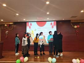 徐艺和姜舒颖的舞蹈青春洋溢,气氛欢快活泼。路壁榕,马思涵和曾寒琳三位同学演绎的歌曲《锦鲤抄》用婉转的曲调带领大家跨越时间领略古风之美。游戏环节“害你在心口难开”,同学们积极参与,笑声不断。接着,王悠然和程思宇带来的歌曲《你不知道的事》,歌声优美,令人难忘。隋茹钰和黄文懿表演的英文歌曲《wonderful U》灵动悠扬。马叶琪和邵正棋同学带来舞蹈《芒种》优雅轻盈,绰约动人。最后,张慧珂、吕芷悦、俞汶希、胡迪四位同学满含深情朗诵《我的祖国》,表达了她们对祖国的赞美与热爱。
