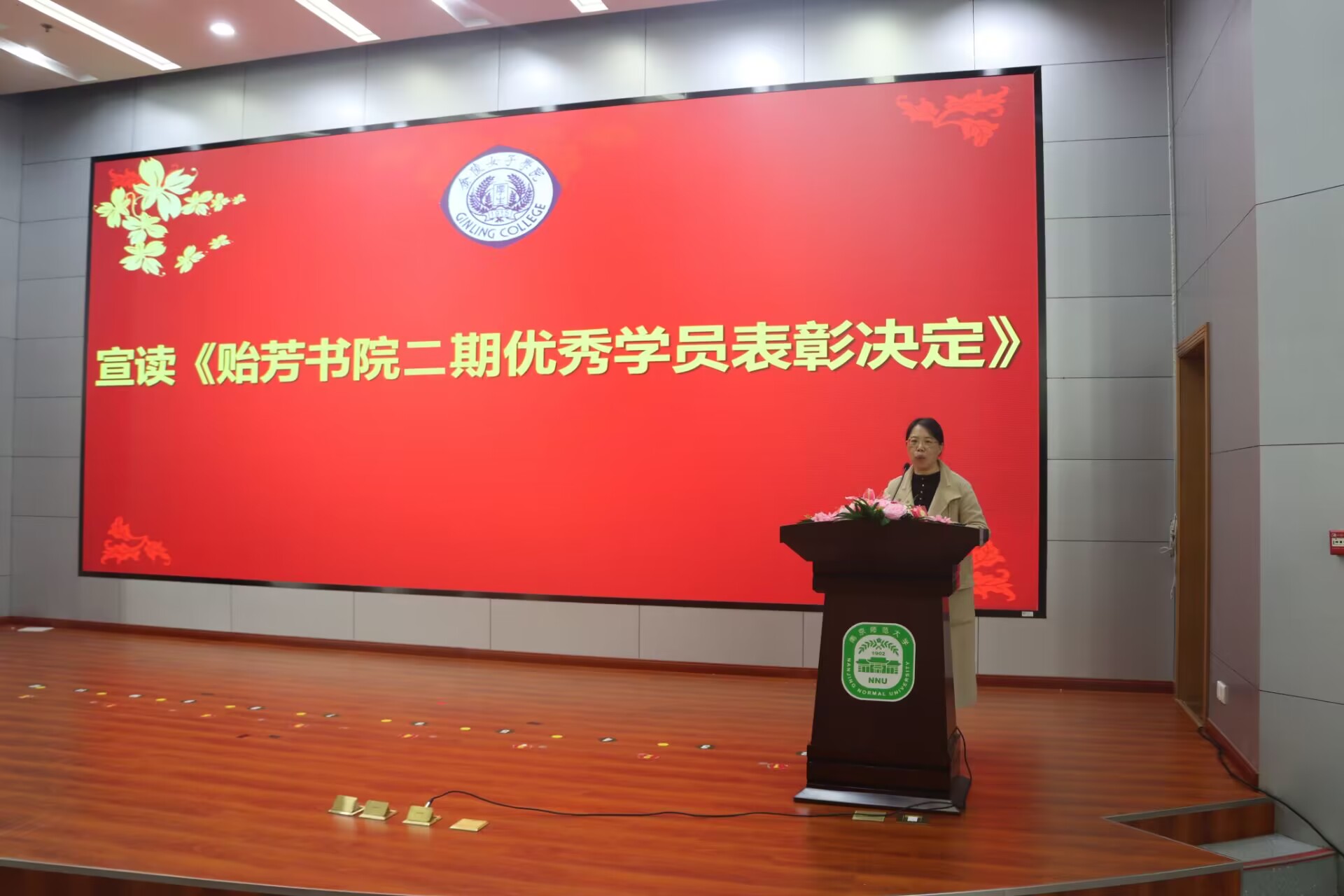 仪式最后,校学生工作处(部)副处(部)长孙茂华宣读《贻芳书院二期优秀学员表彰决定》,并由校教务处副处长周云、校团委副书记李鹏向优秀学员们颁发奖学金。