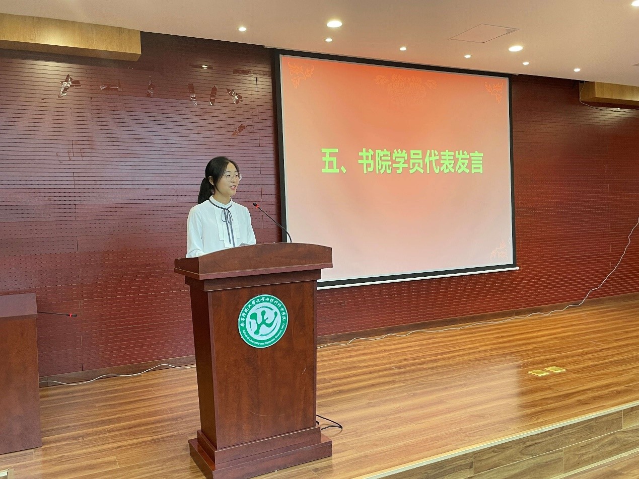 表彰环节后,书院二期学员代表曹露晴发言。她回顾了自己在贻芳书院的学习经历,分享了自己的成长蜕变以及对“全人教育”的理解,并对书院的培养表达了衷心的感谢,呼吁同学们继续秉承厚生精神,踔厉奋发,锐意进取。