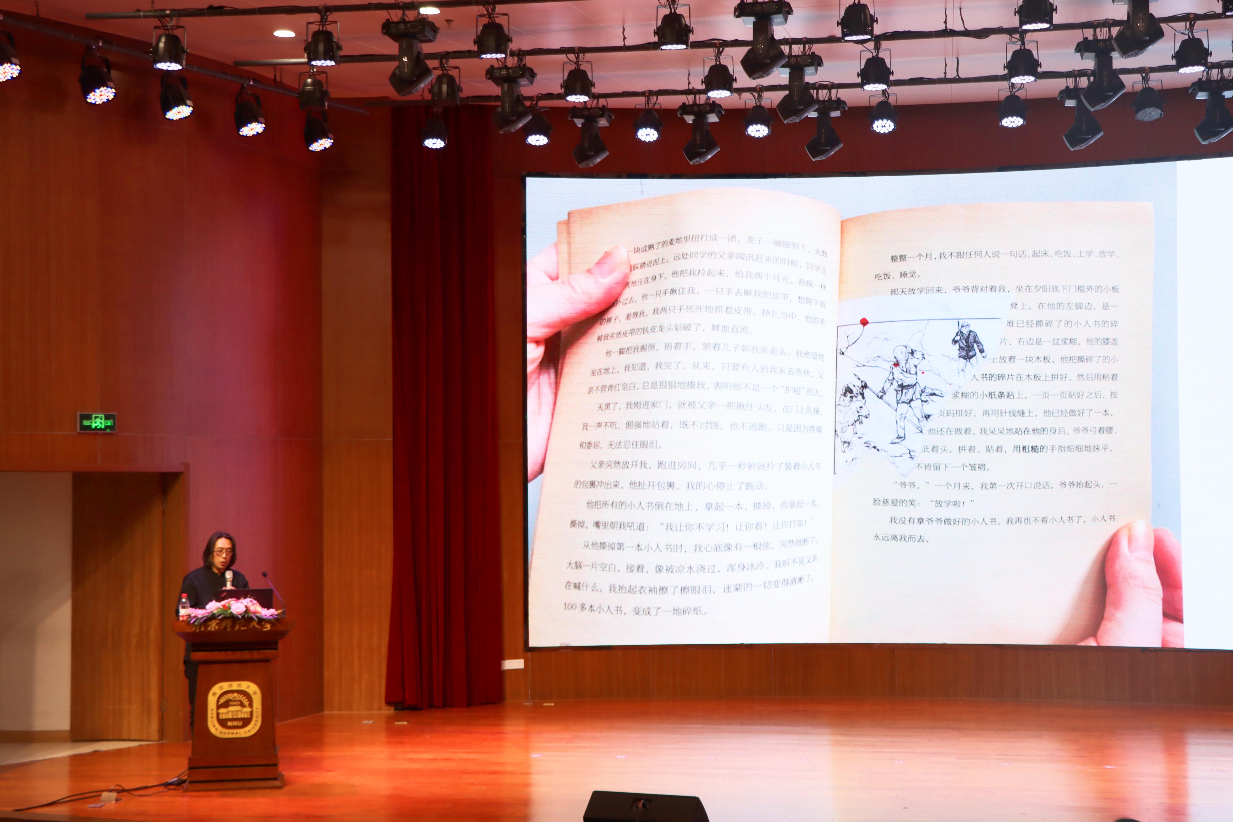 随后,朱赢椿老师通过介绍《不裁》与《不哭》两部作品封面的匠心之处,引出了“瑕疵之美”的含义,他认为读书重在乐趣,如何把书做得有趣成为他最重要的写书目标;随后,他又通过“便形鸟”这样极具创造力的艺术作品介绍“丑陋之美”的概念,倡导大家学会变换角度看待问题,提高创造力和想象力。朱赢椿老师用极具创造力的视野与幽默的语言将观众们带入了想象的世界,现场反响极其热烈。