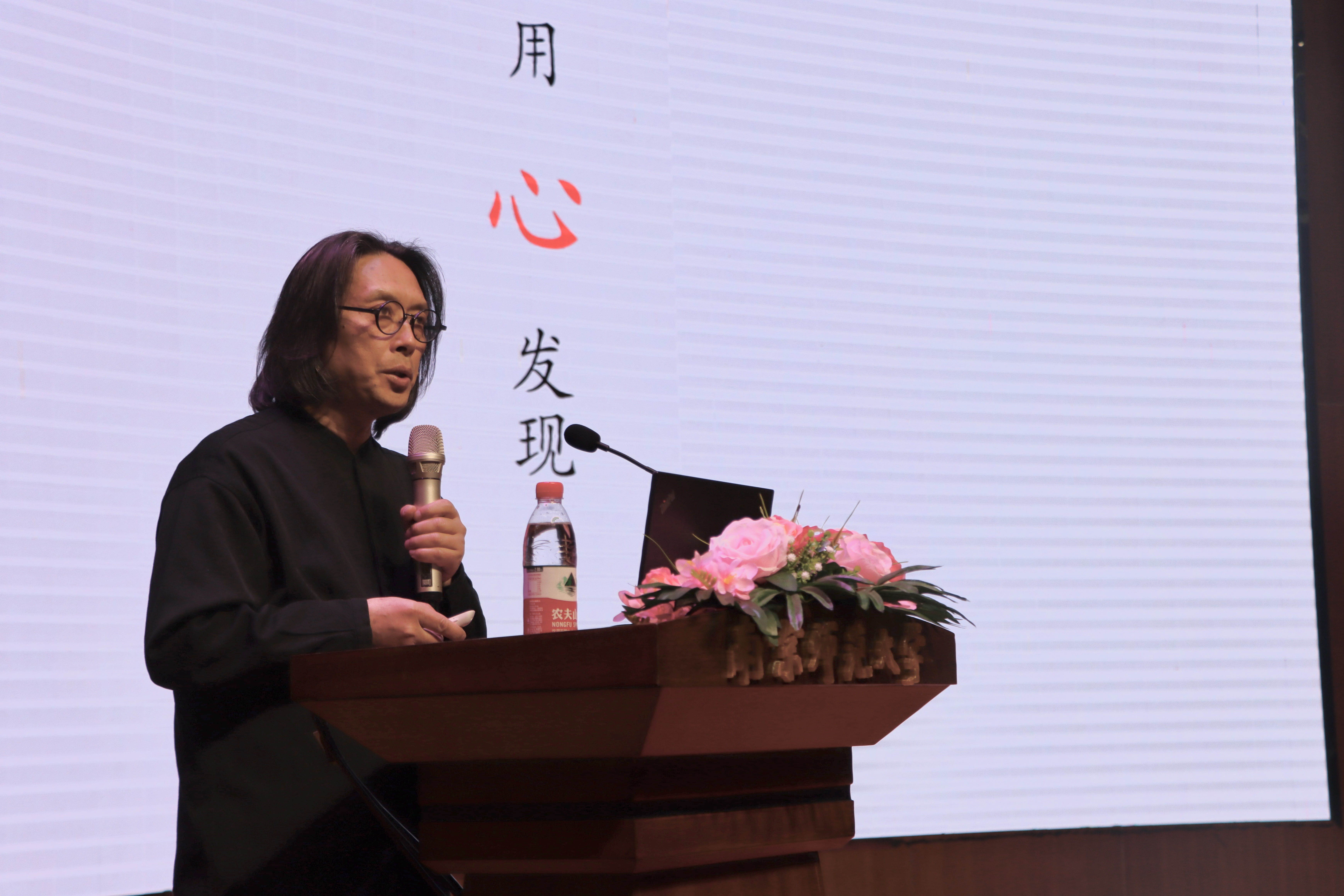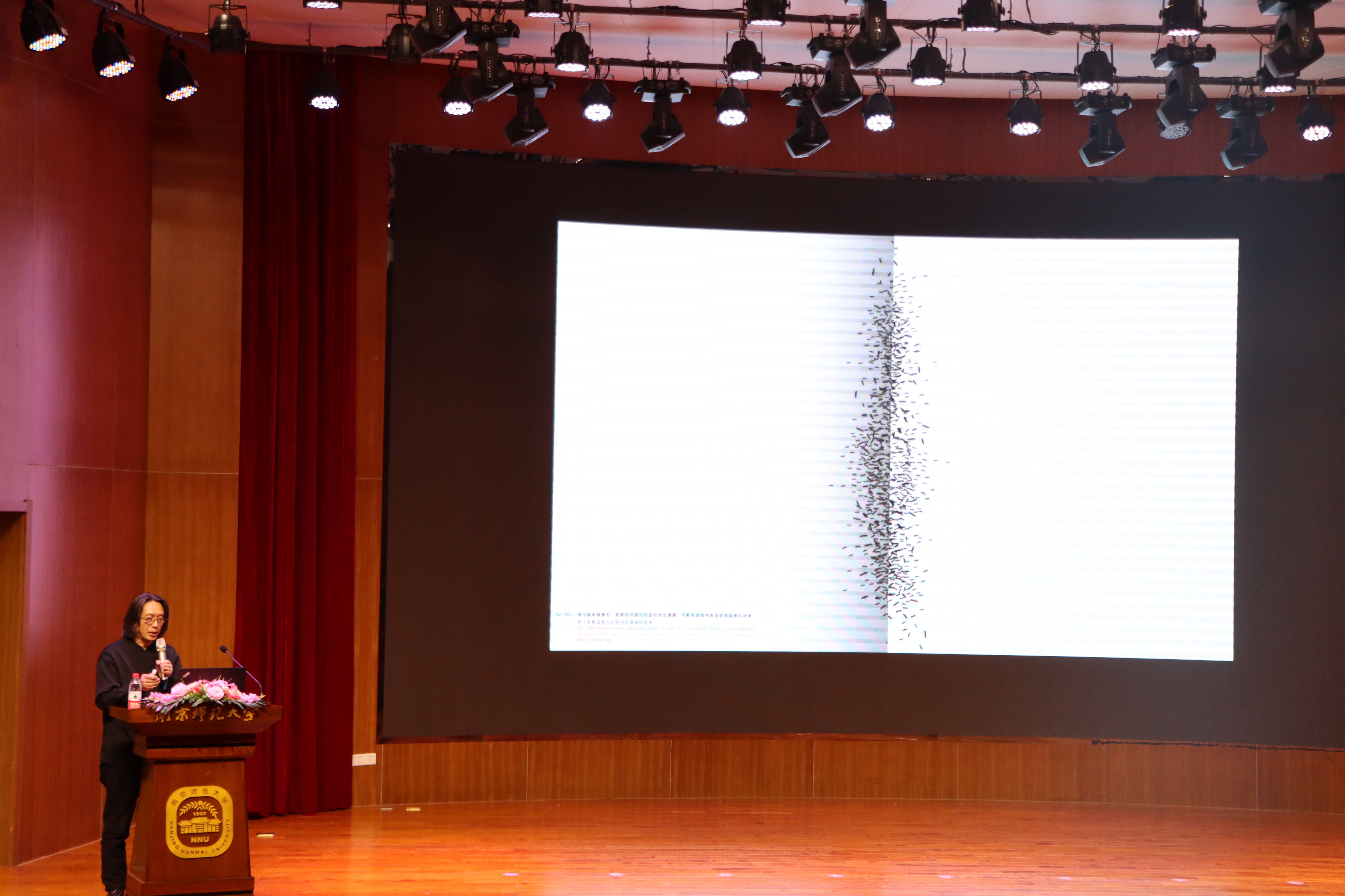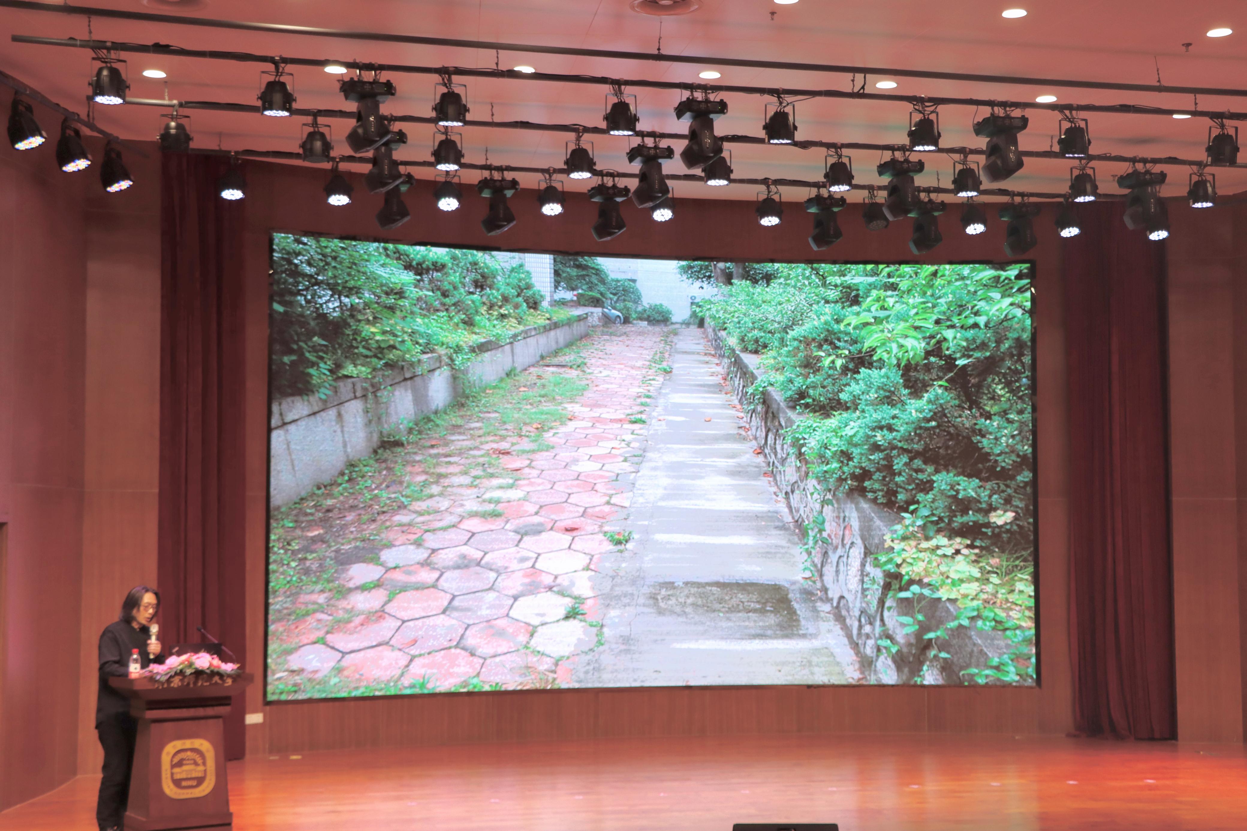 朱赢椿老师以“转念见美”为主题,主要通过“自然之美”、“瑕疵之美”、“丑陋之美”等概念阐述了“美”的内涵。讲座伊始,朱老师通过讲述《蚁呓》、《虫子诗》、《虫子旁》等作品的灵感来源和创作过程,指出“自然之美”的要义:不要以为人多高尚,蚂蚁有多卑微。趴下来与大地接触,大地也会给你回馈。