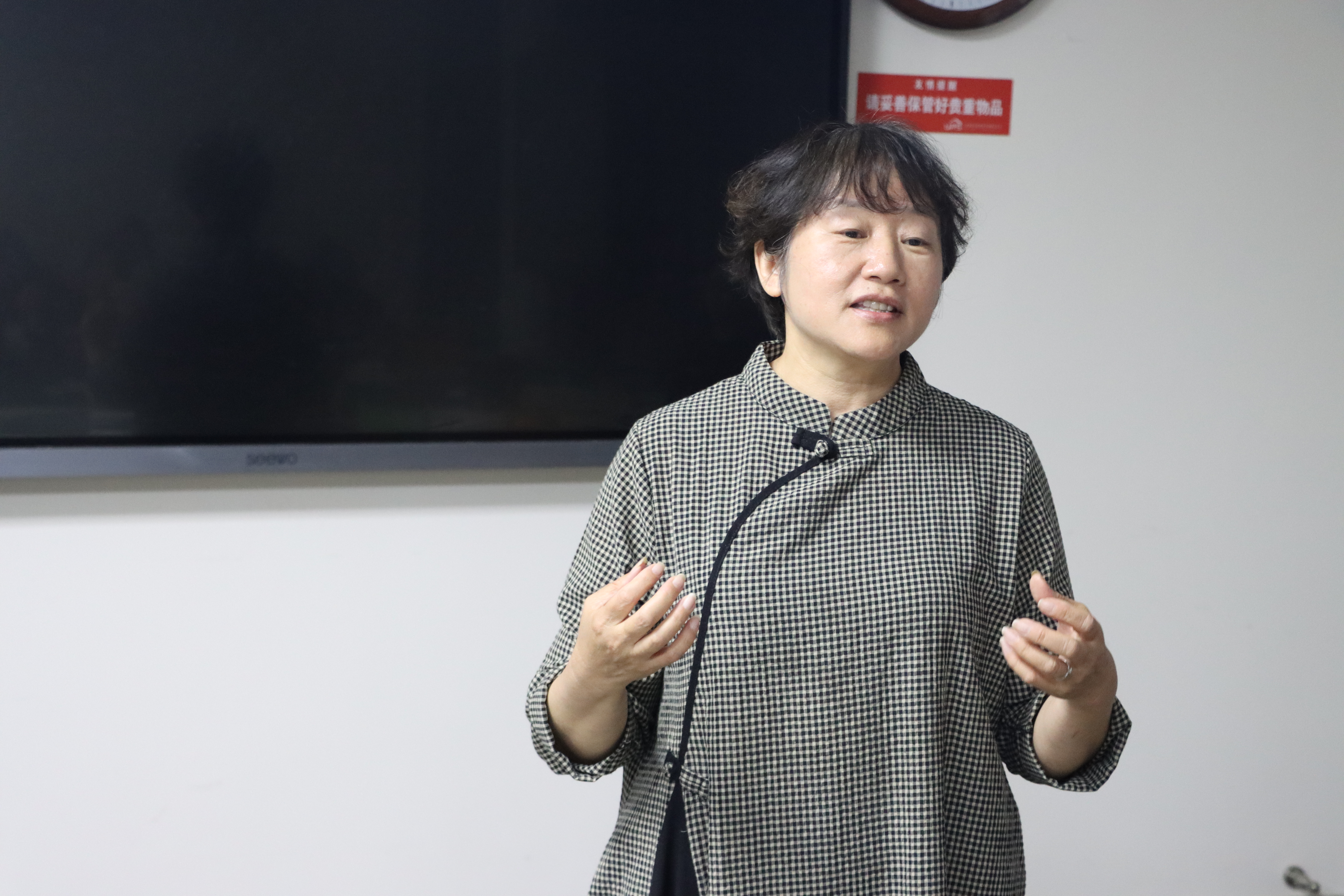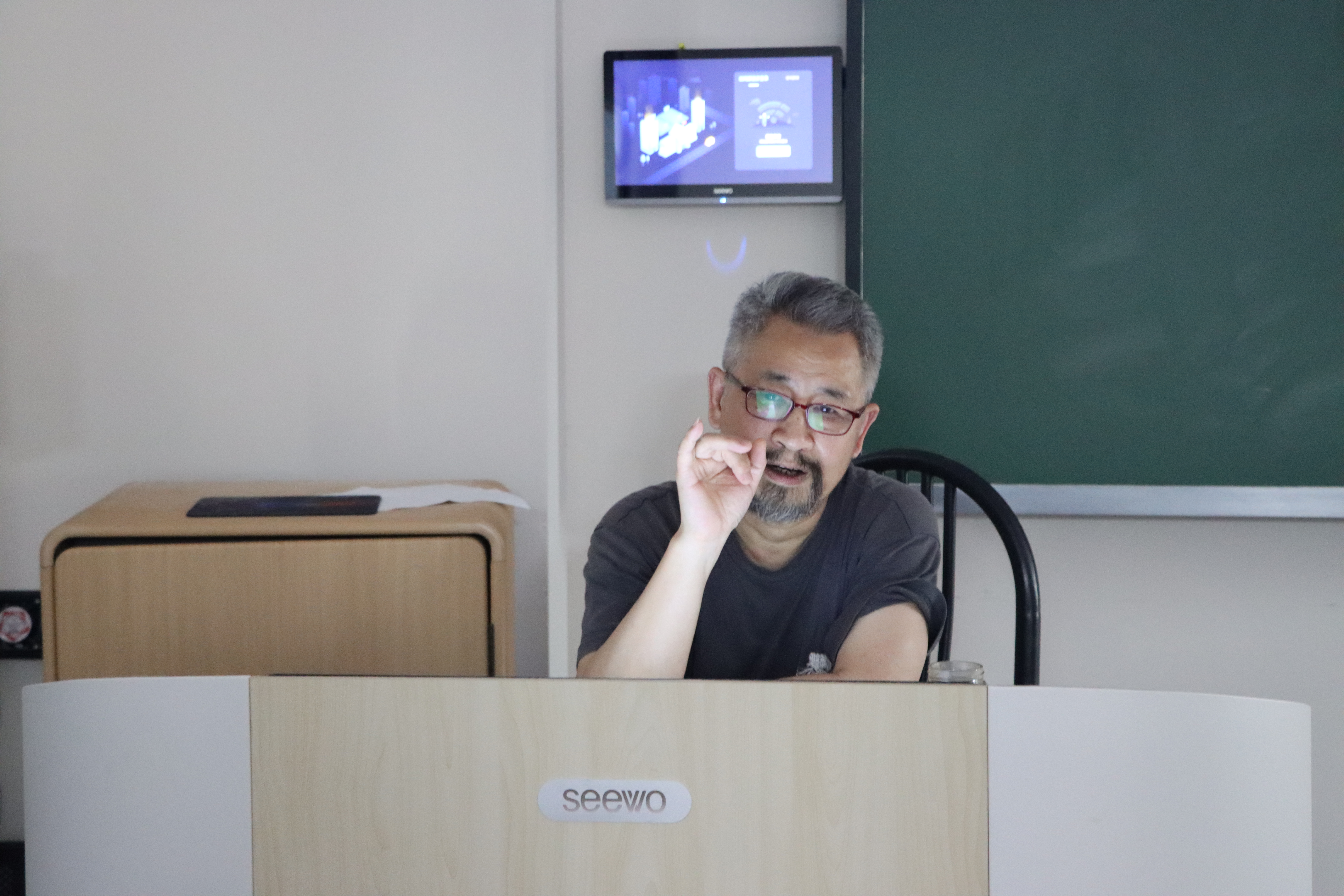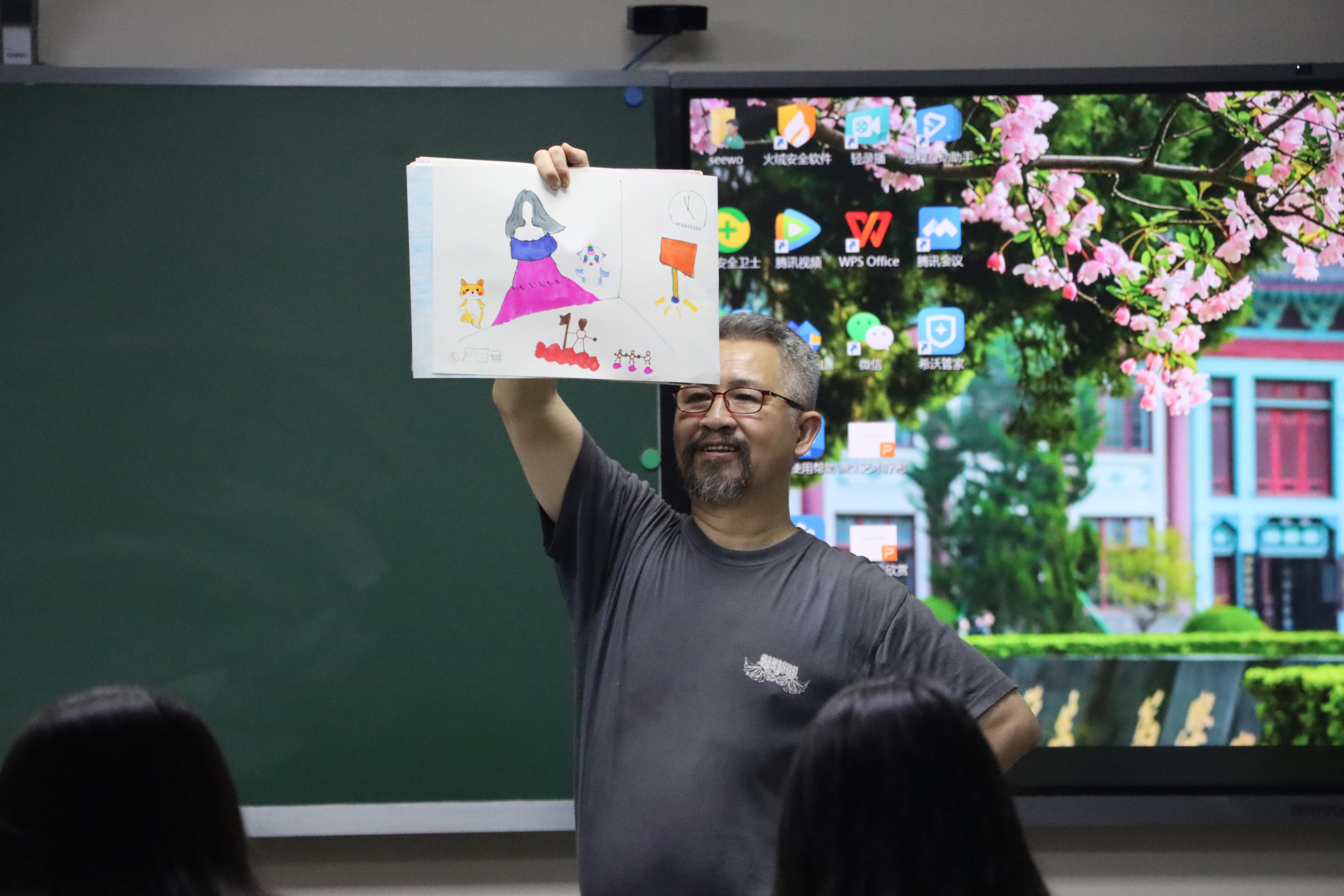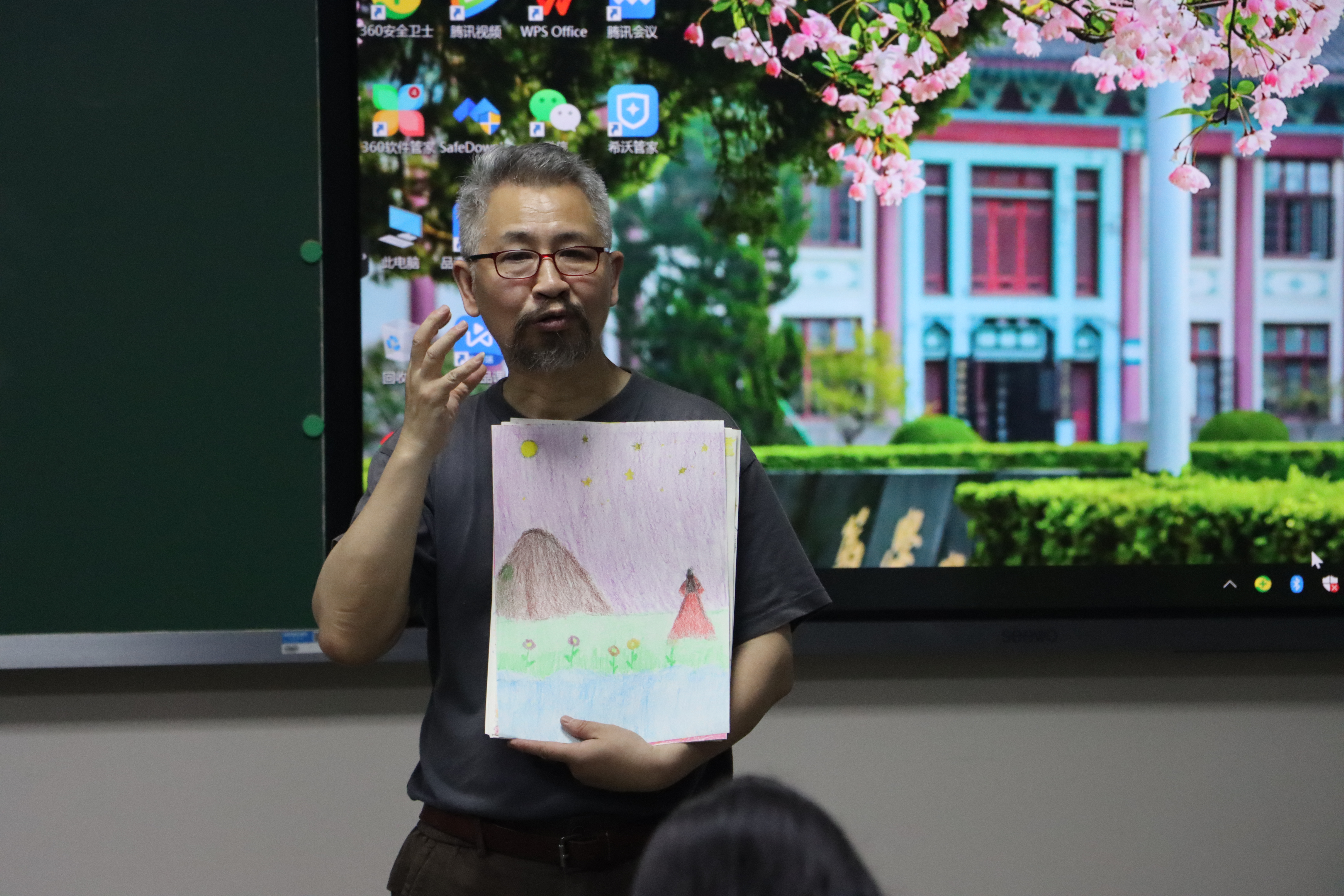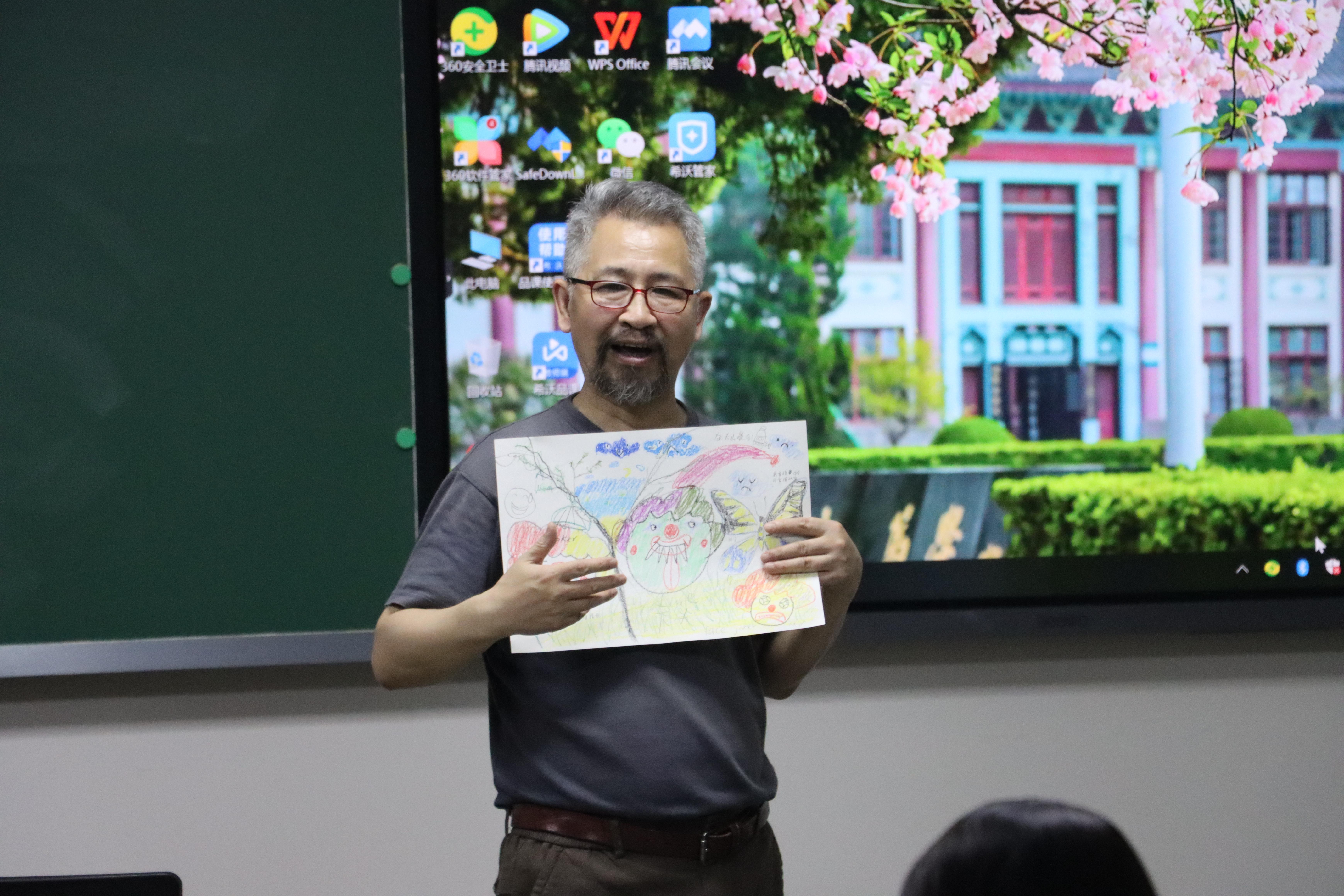 活动伊始,郭海平老师从“原生艺术与自我疗愈”的主题出发,通过事例分享、中西对照、作品分享加深了同学们对原生艺术的认识与理解。随后,在作品分享阶段,郭海平老师讲述了每张艺术作品背后的故事,并对这些创作者的内心表达进行了相关分析,强调激发原生艺术潜能的重要性。接着郭老师与学生们分享了如何进入“非思”、“无知”的状态,随心所欲地进行创作。随后,郭老师倡导大家无需借鉴经验,在自己潜意识和身心的引导下进入原生艺术的创作状态。