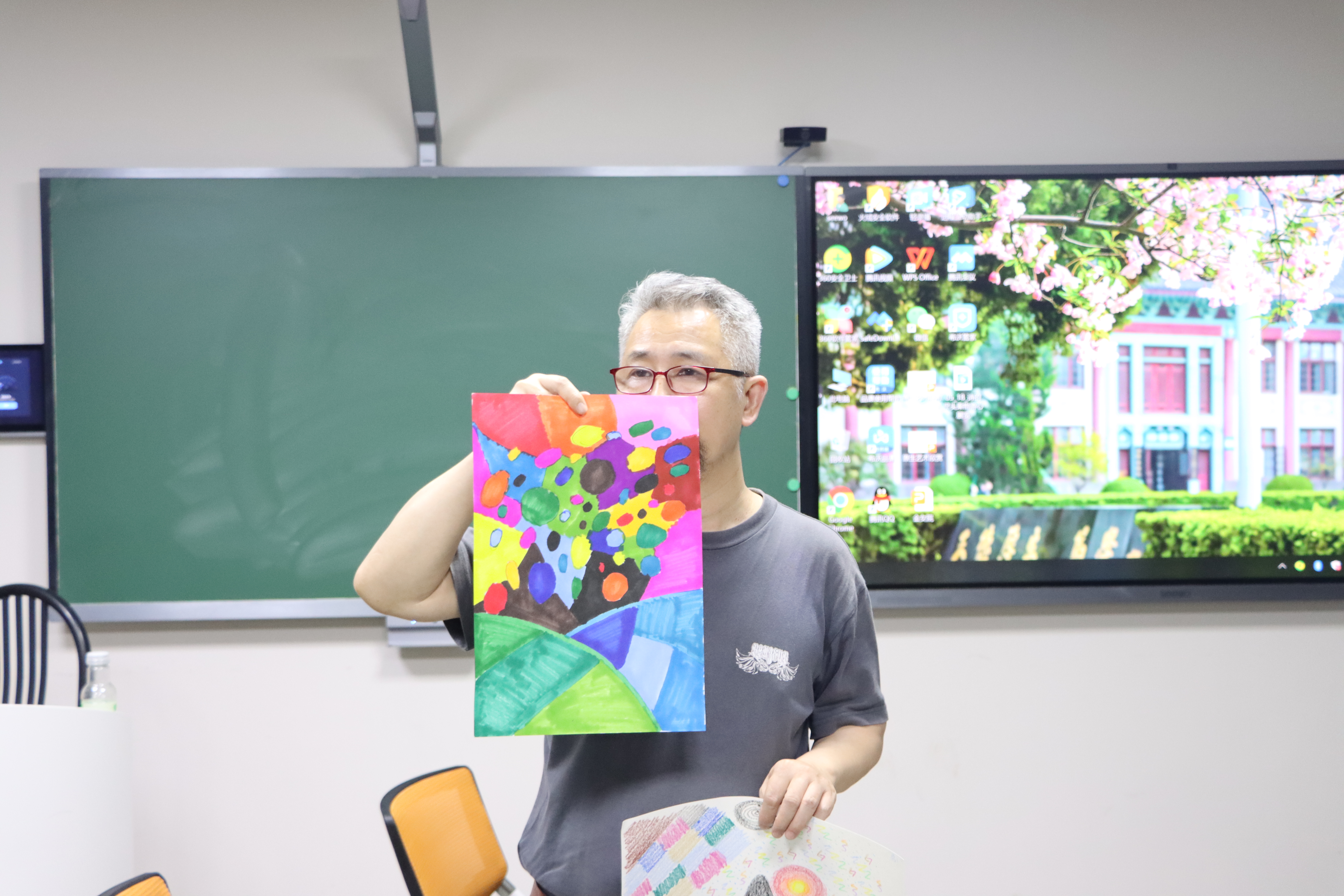 活动结束后,边院长对此次工作坊进行总结,鼓励同学们在日后的生活中进行原生艺术画作的创作,从而促进自我心理建设,培养内在品德。通过此次的体验,同学们进一步感受到了原生艺术疗愈的价值,加深了对原生艺术的了解,提升了对原生艺术的审美能力。至此,“原生艺术与自我疗愈”工作坊活动圆满结束。