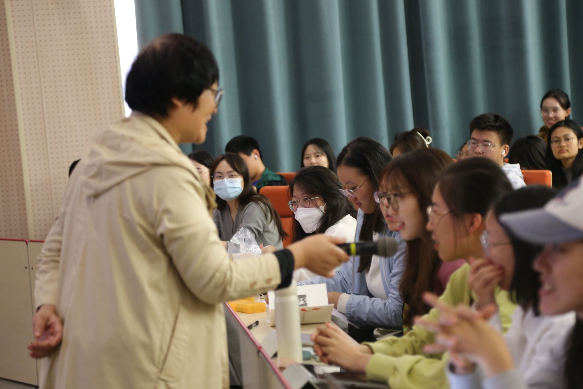 随后,桑教授通过积极心理学为同学们介绍了心理坚韧的三个境界:复原力,弹性,茁壮成长。桑教授通过不同人对同件事的不同反应告诉同学们,可以通过“八正法”、“光明思维法”调整自身状态,从而达到自身的心理认可。她还提到,面对生活中不可控的因素,同学们应该从心理上承认它,默许它,首先做到情绪上不为它所扰,然后再找出应对和改进的措施。而对于幸福感的获得,桑教授则给予了几点建议:悦纳自我、面对挫折、保持乐观。