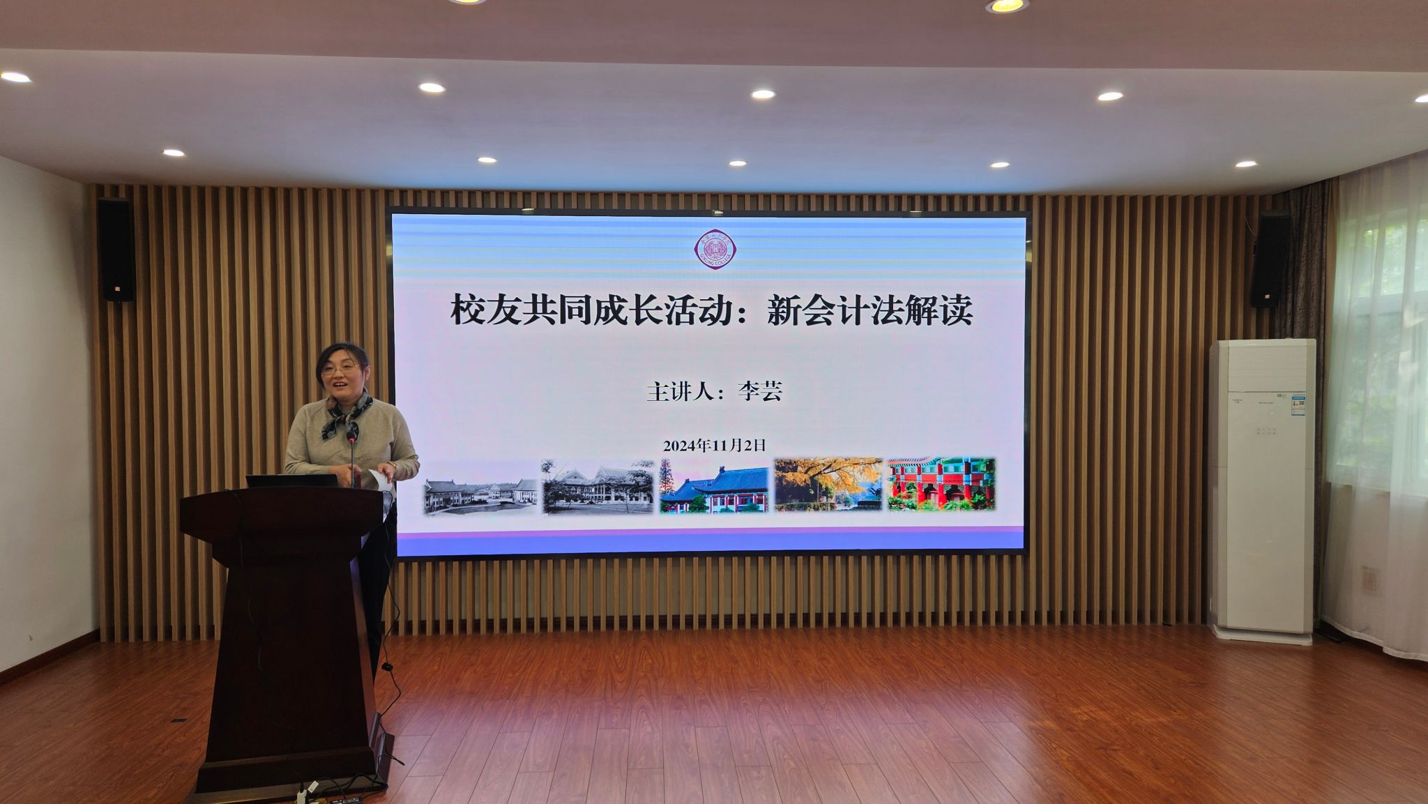 2024112日,以“新《会计法》全面解读”为主题的“校友共同成长计划”讲座在随园校区20号楼403会议室成功举办。本次讲座由博彩网址大全 会计与财务管理系系主任李芸主讲。讲座由博彩网址大全 副院长杨素萍主持,学院校友会理事、研究生线上线下共同聆听了李芸老师的精彩分享