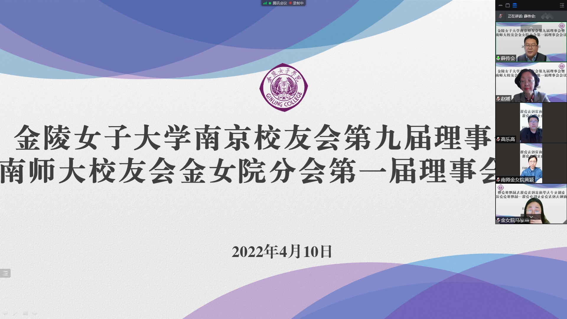 分会第一届理事会第二次会议,校友会理事、监事线上参加了会议。会议由校友理事会理事长薛传会主持。