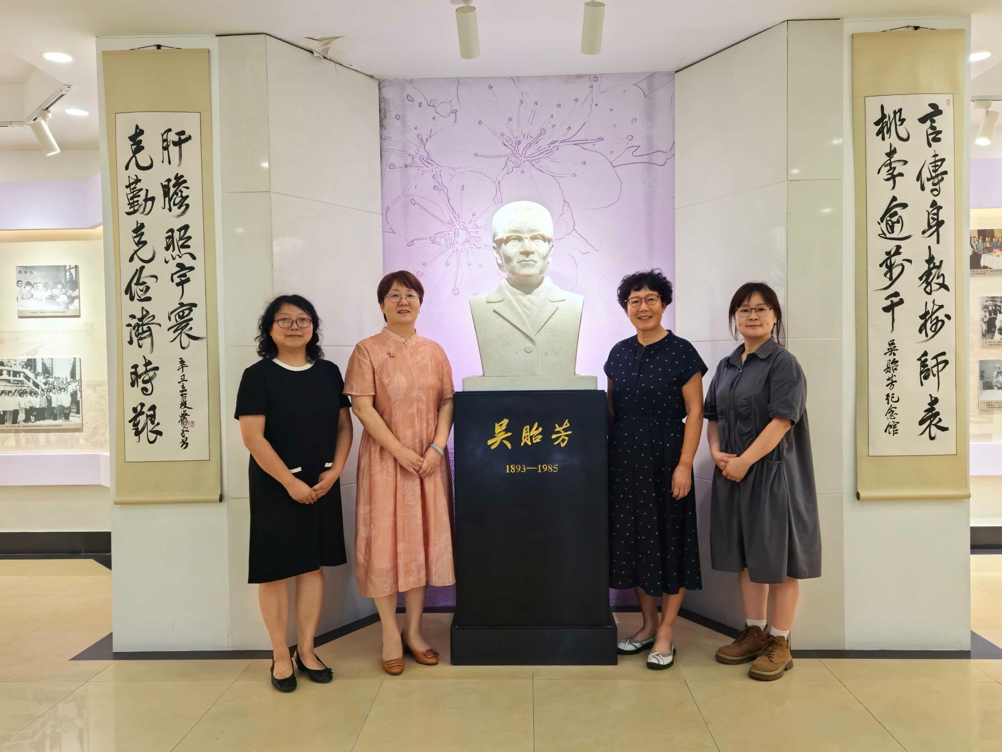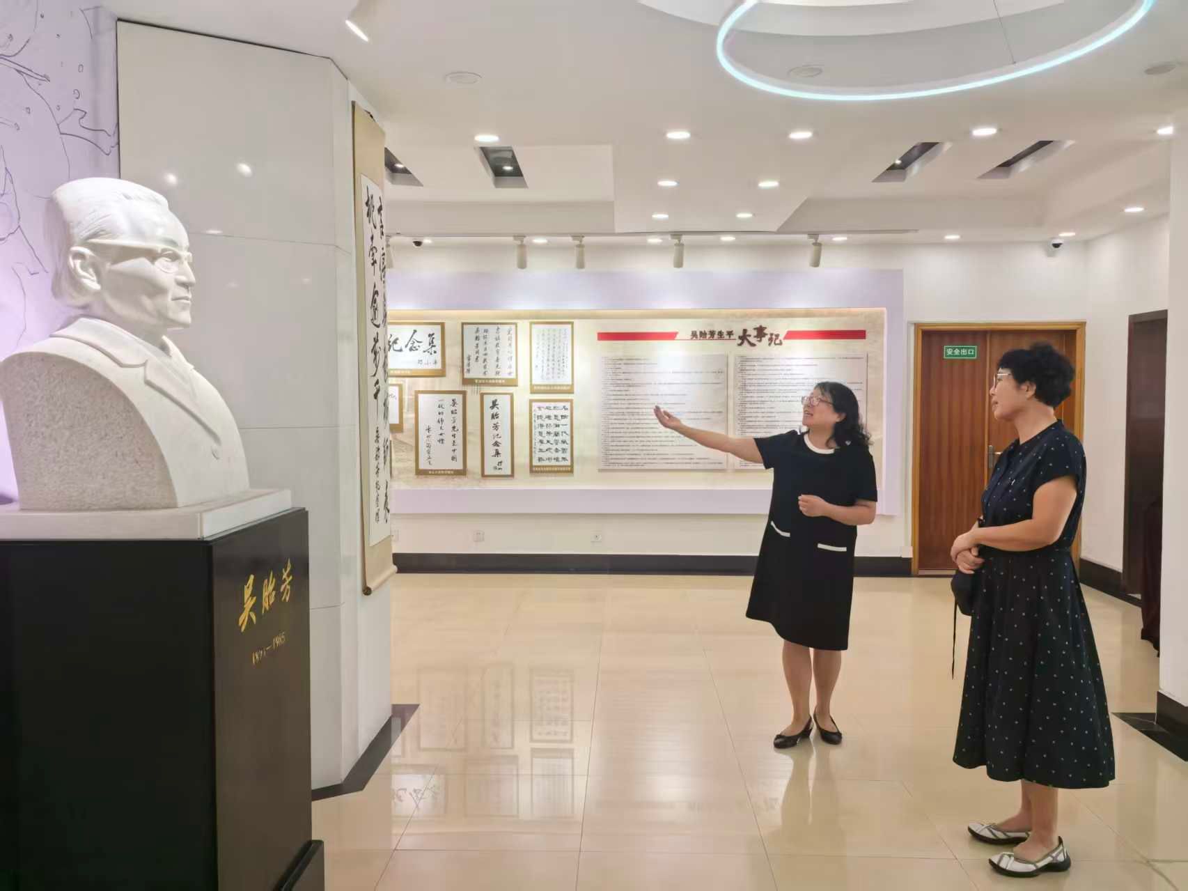 在学院党委书记周红的陪同下,武燕平女士参观了庄严肃穆的吴贻芳纪念馆。学院办公室主任徐耀缤老师担任讲解,深情讲述了吴贻芳老校长以及包括杜念沪在内的金女大先贤们的光辉事迹。馆内珍贵的历史照片、文献资料和实物展品,仿佛将时光拉回到了那个风雨飘摇却又充满理想的年代。武燕平女士神情专注,不时驻足凝视,在母亲曾经学习、生活过的故地,感受着跨越时空的精神共鸣。