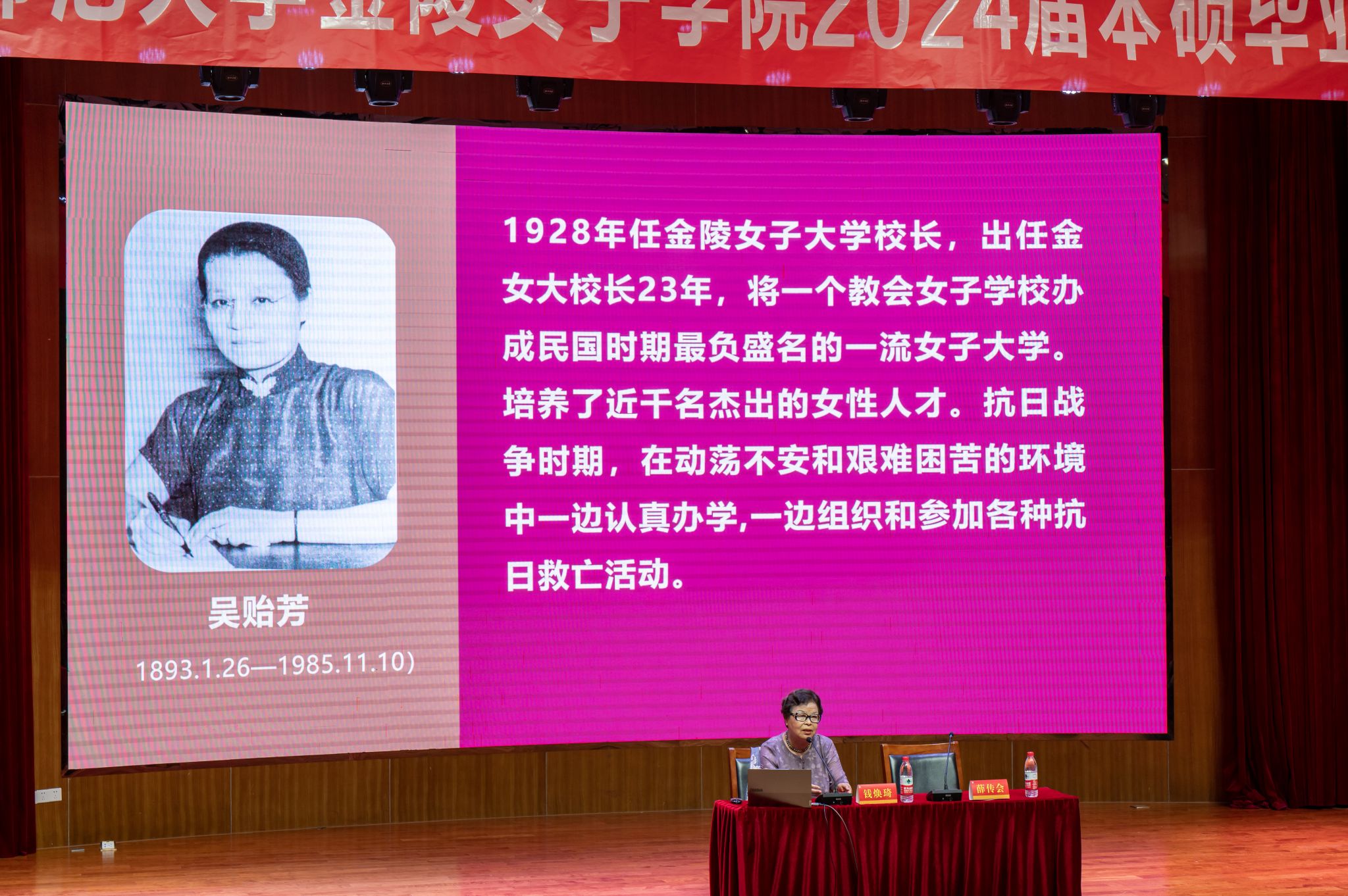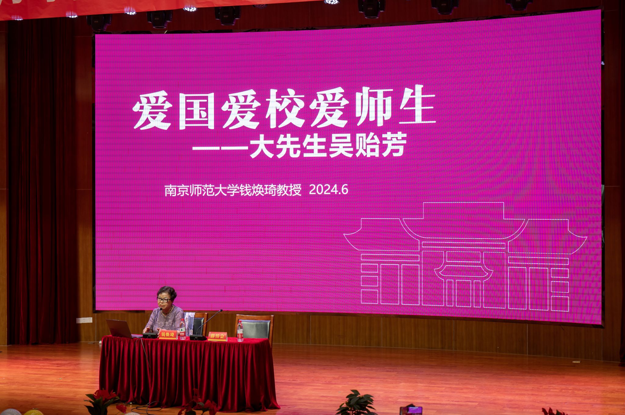 钱焕琦教授以校史、院史的提问开场,讲述了金女大的前世今生,介绍了吴贻芳校长在国家民族危难之际的英勇作为。在抗战时期,吴贻芳一边认真办学一边组织和参加了各种抗日救亡的运动,代表中国人民参加联合国制宪大会,信任、爱戴和拥护中国共产党,为教育事业和统战事业奉献终生,是当之无愧的爱国教育家。