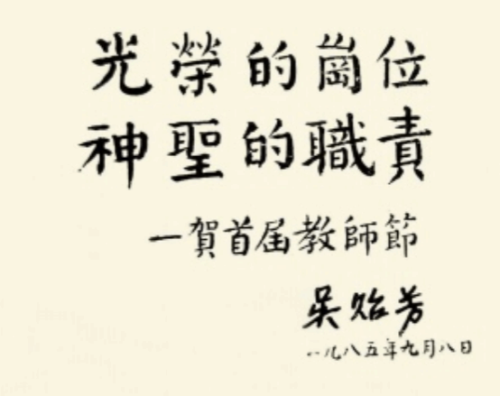 今天是9月10日,是新中国第四十个教师节。1985年的9月8日,吴贻芳先生抱病之中欣然为南京师范大学校刊题词“光荣的岗位 神圣的职责——贺首届教师节”。