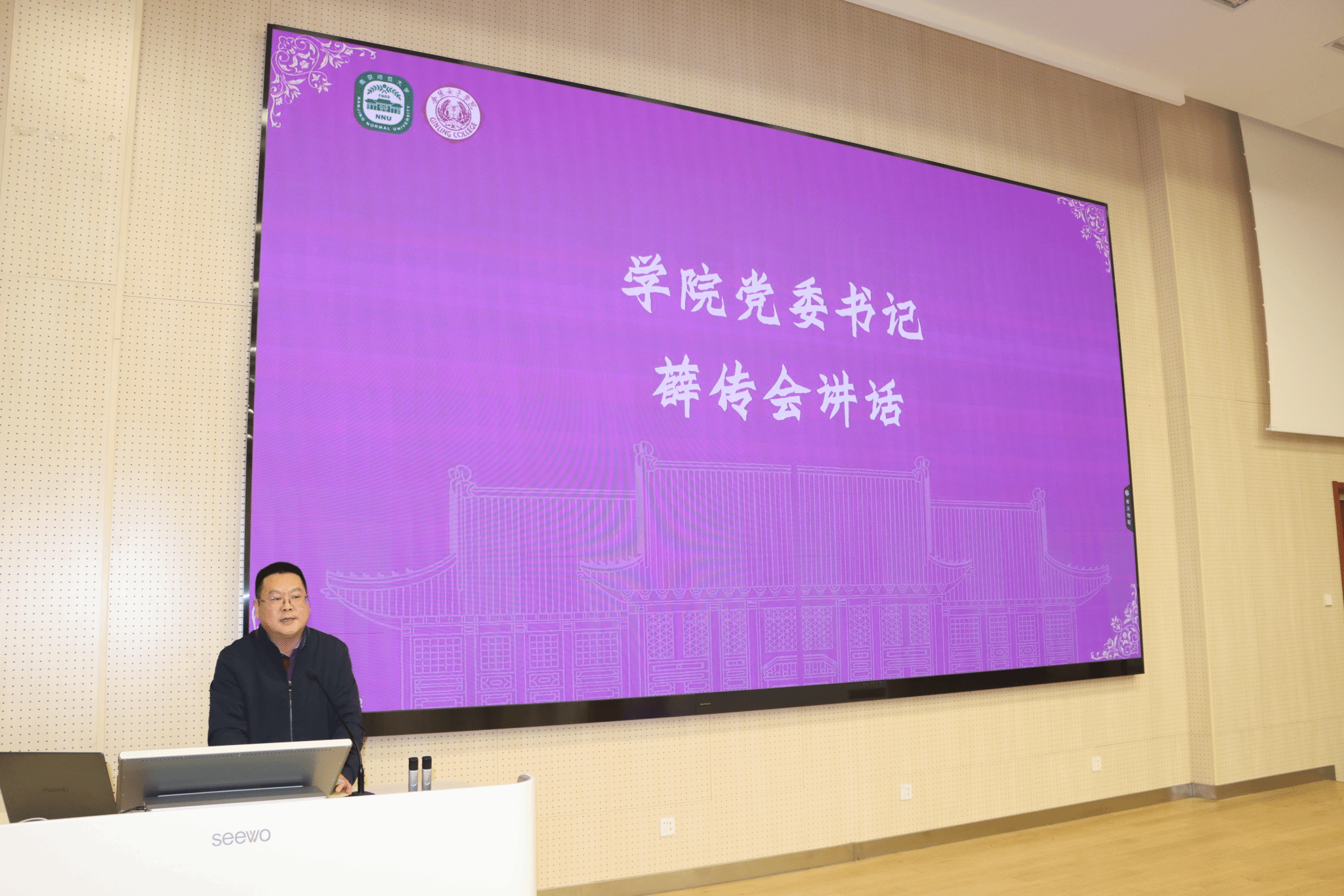 现学科设置、国际交流活动、奖助学金和金陵歌会等学院情况,特别强调了“厚生”精神的传承,鼓励学生服务社会、追求卓越。她介绍了贻芳书院的三个阶段培养方案,鼓励学生通过参加素质讲座、工作坊等书院活动提高自身综合素质,在新学院遇见最好的自己。