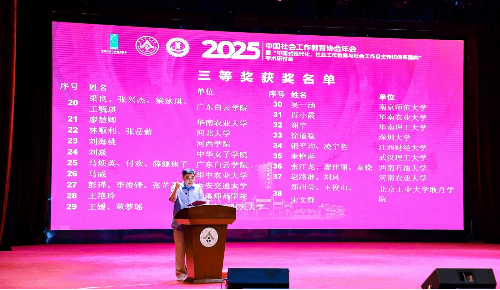 在闭幕式环节,吴一涵副教授撰写的《精神障碍青少年返校过程中自我认同动态演化的定性追踪研究》一文,荣获中国社会工作教育协会2025年会优秀论文三等奖。
