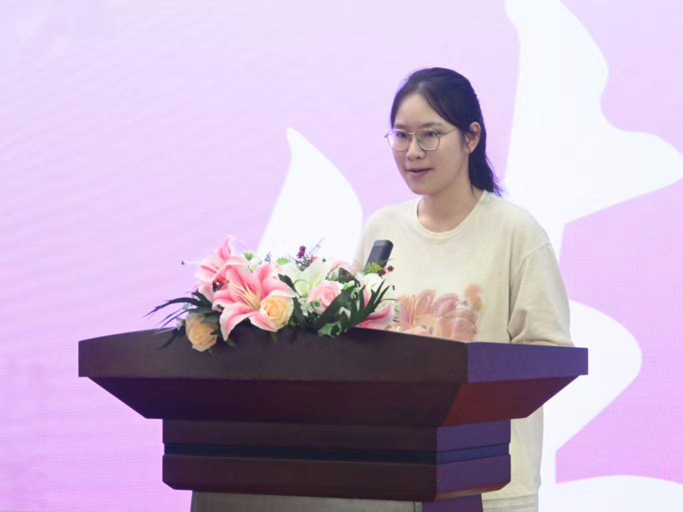 老生代表、2023级财务管理专业许悦以“学姐”的身份讲述了自己如何从“抓耳挠腮的新生”蜕变成为“自信昂扬的骨干”。她以“何为厚生”为主线,用亲身经历为新生们提供了一份难能可贵的“成长答案”。在她的成长历程中,有探索的艰辛,有实践的淬炼,更有学院的鼎力支持和师长的倾囊相授。最后,她期待与大家一同成长,共同践行“厚生”精神,成为“眼里有光、心里有爱、肩上有责”的新时代金陵儿女。