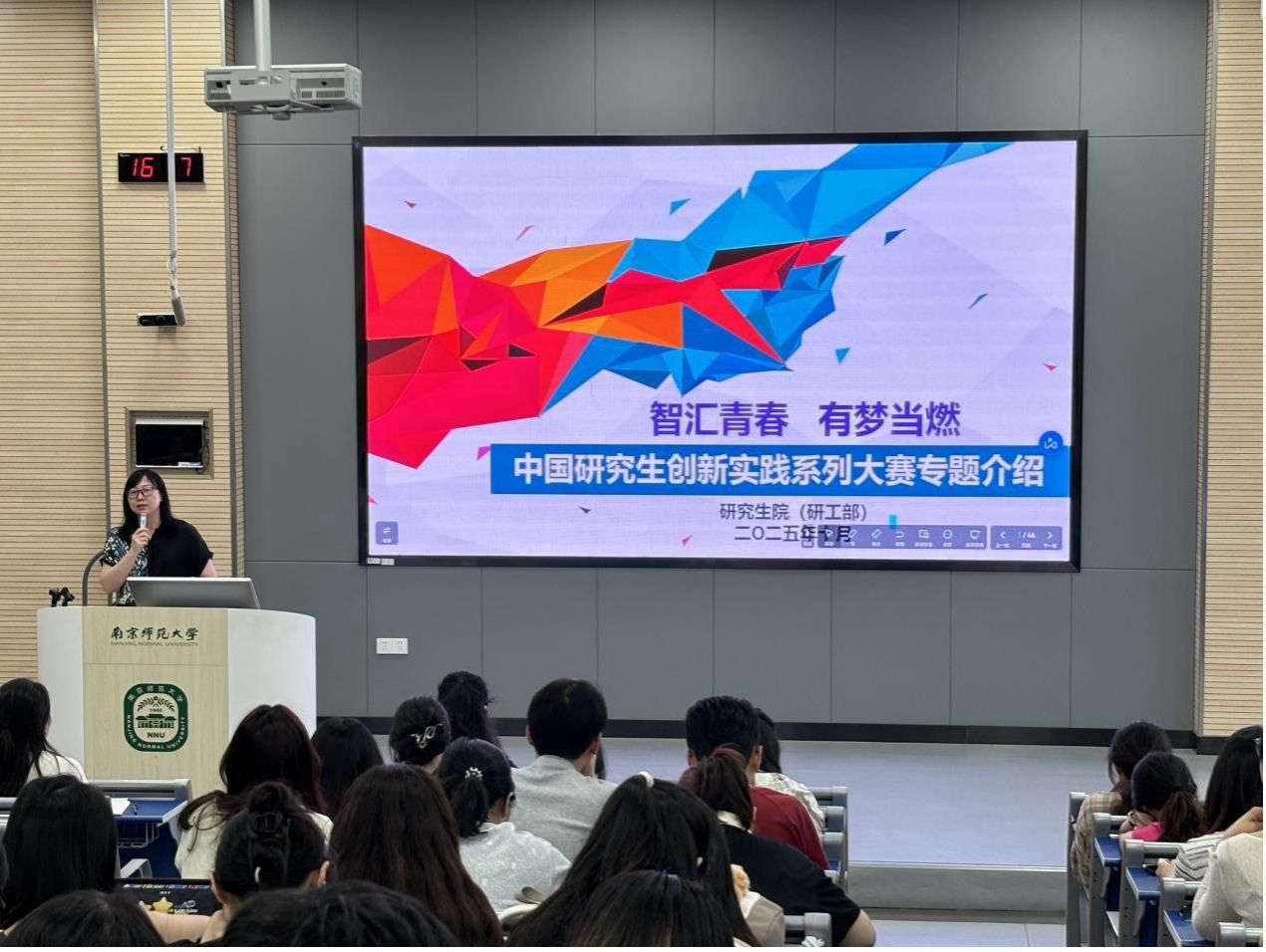 特邀校党委研究生工作部副部长沈晓颖老师,为研究生新生作研究生创新实践竞赛专题讲座。学院党委副书记冯宁主持了本次活动。研究生辅导员葛茹及2025级全体研究生新生参会。