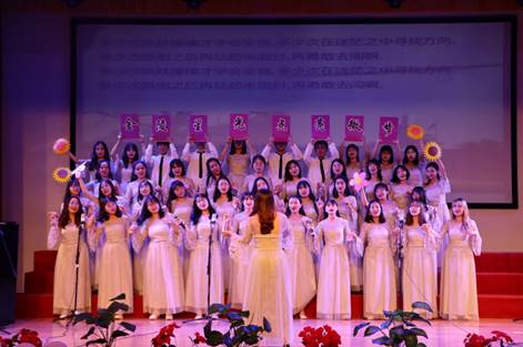 会计专业代表队演唱了《我们都是金陵的儿女》、《送别》两首歌曲,伴随着小提琴优雅的乐声,他们用歌声将故事娓娓道来,讲述着师生情谊;劳保专业代表队用《金陵的儿女欢聚一堂》、《微微》两首歌曲,营造喜悦气氛,用歌声诉说他们平凡却不平庸的青春故事。财管专业代表队的《金陵女子文理学院院歌》、《青花瓷》压轴出场,灯光下翩然起舞的姑娘让观众们眼前一亮;最后,伴随着《Oh Dr.Wu》、《Any dream will do》两首歌,英语专业代表队的师生们用悠扬动听的歌声致敬吴贻芳校长。