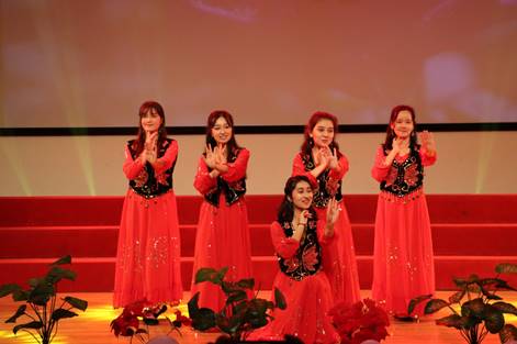 来自新疆的5位姑娘带来了民族舞蹈《美丽的姑娘》,她们步履轻巧,身段绰约,舞出了少数民族族姑娘们的热情。