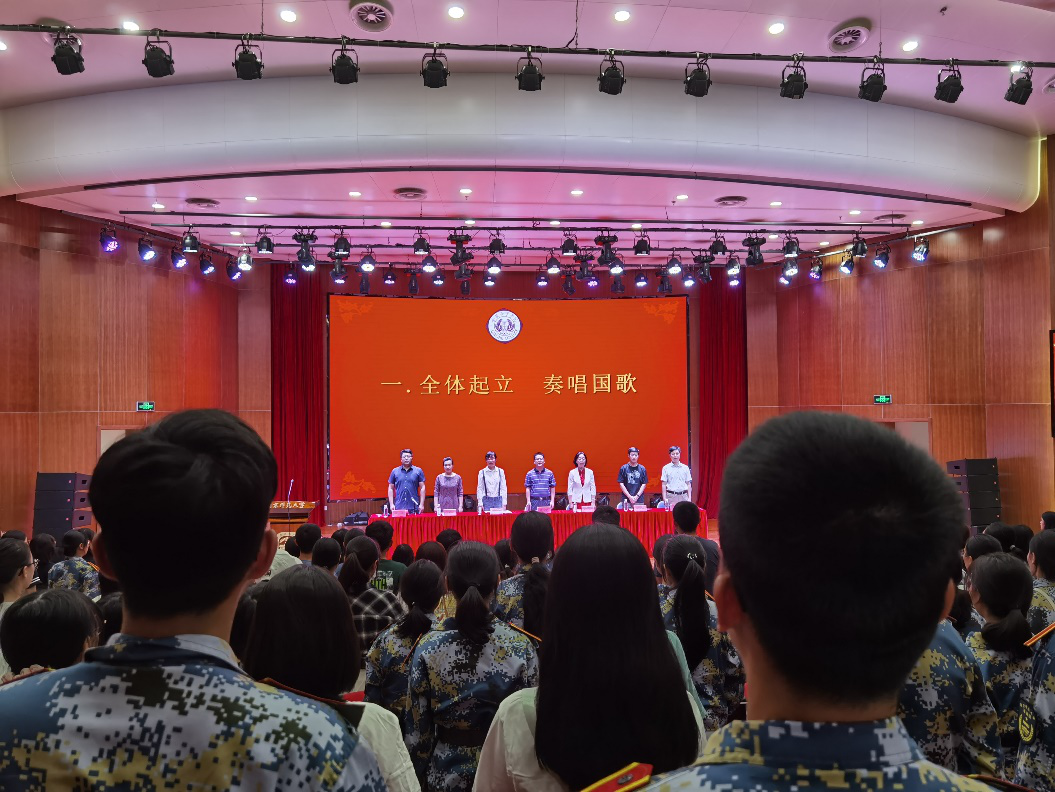 在庄严的国歌声中,开学典礼拉开了帷幕。