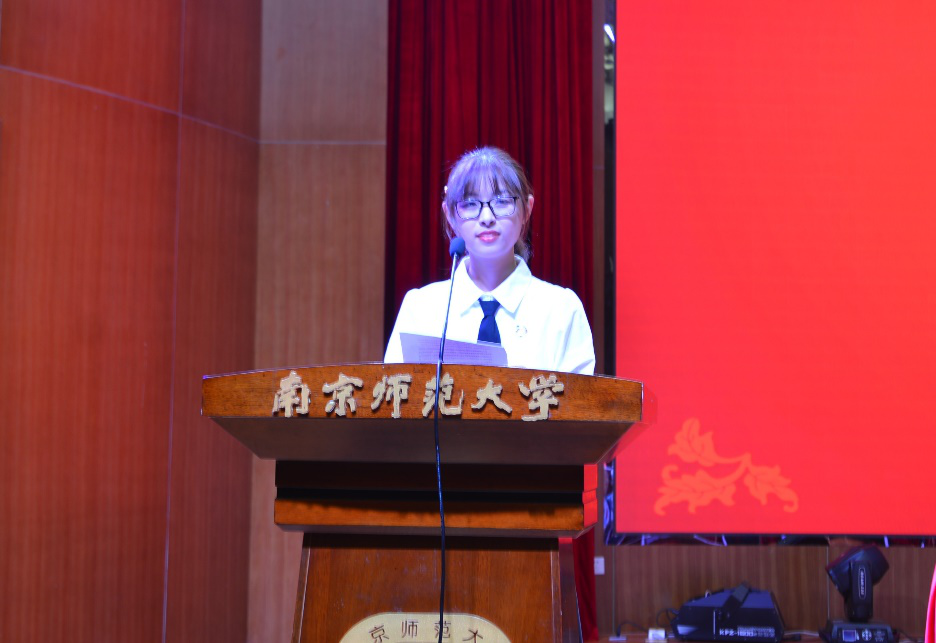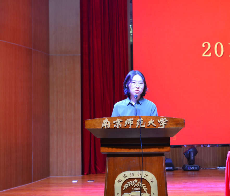 2020级英语专业的王悠然同学作为新生代表发言。她表达了对学校的赞美与对校园生活的憧憬,讲述了对大学生活的思考与规划。她号召同学们:不断探索,目光长远;定位清晰,持续努力;坚定理想,掌握本领;保持自律,不断奋斗,为学校与社会的发展贡献力量。