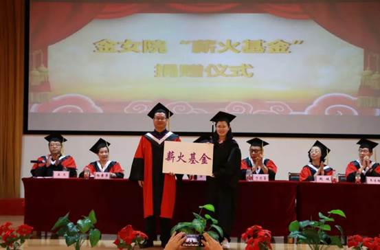 党委书记薛传会代表学院接受“薪火基金”捐赠。毕业生代表吴静同学向全院毕业生发起倡议:铭记学院教诲,感恩学院馈赠;以拼搏进取之心,和母院共创辉煌;以践行厚生为一生信仰,用拳拳爱心照耀金陵学子。