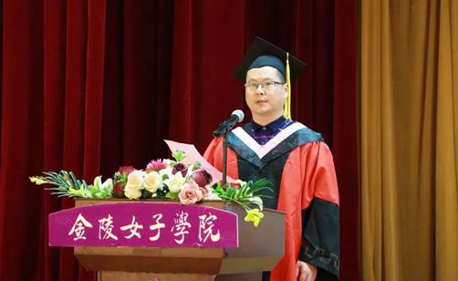 教师代表英语系副系主任马黎燕老师以文艺复兴三杰为榜样激励毕业生,希望大家可以像达芬奇一样跨越专业和学业的限制,保持好奇心;像米开朗基罗一样学会创新;像拉斐尔一样尊重知识、肯定智慧,除此之外,更要学会他们共有的坚韧不拔的精神。只有这样,在遇到逆境时才能泰然处之。