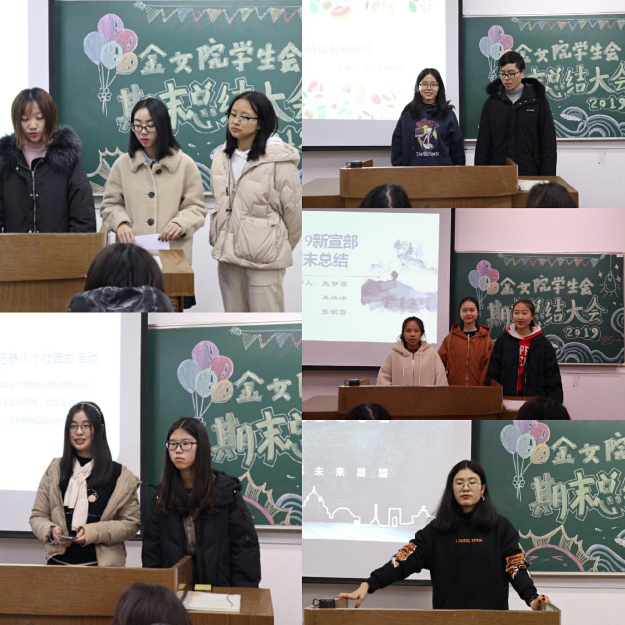 学生会期末总结大会在学明楼106顺利召开。大会主要分为三项程序:各部门展示总结,主席团发言和指导老师发言。