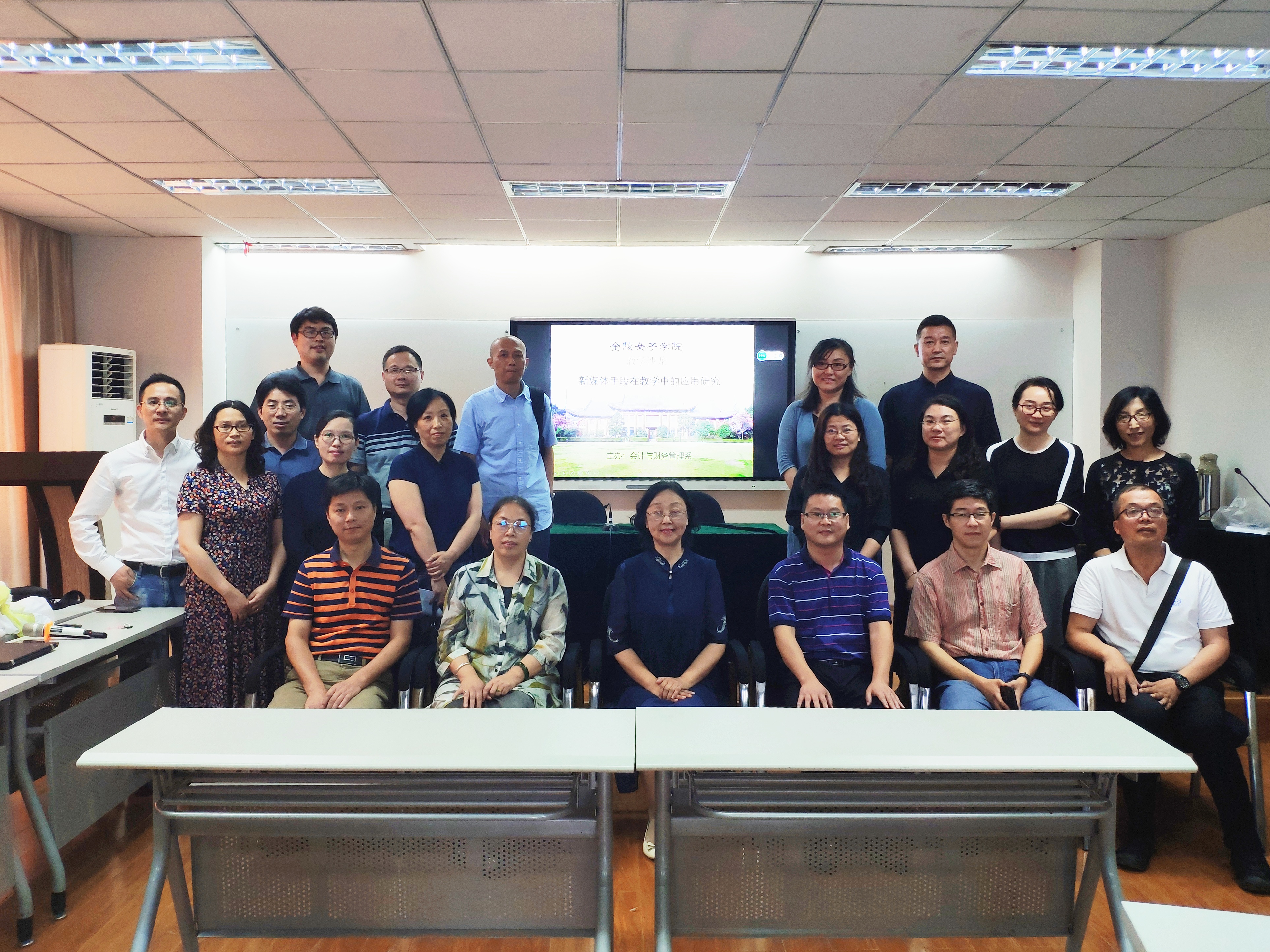 赵媛院长、薛传会书记、韦清琦副院长、封思贤副院长、会计系全体教师、以及学院其他科系教师代表参加此次活动。本次教学沙龙由三部分组成,分别是:会计系教学经验分享、业务交流与提问、成果经验总结。