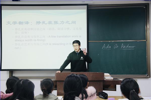 教授、知名译者韦清琦老师在学正503教室为南师大的学子们带来了一场关于文学翻译的精彩讲座。许多对文学翻译感兴趣的学生纷纷慕名前来参加本次讲座。