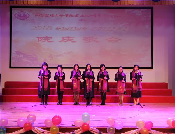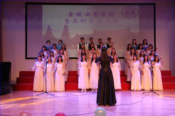 青春永在、拼搏进取的优秀精神,依次为大家带来了精彩的演唱表演。保研学生队伍首先为我们带来了一首《老师,我总是想起你》,每一句都饱含着对老师的深深感激之情。劳动与社会保障专业的同学演唱了《金陵女儿欢聚一堂》与《南京(cover成都)》,他们手拉手、肩并肩,唱出了同学间珍贵的情义。英语专业带来的是《金陵女子大学校歌》与《山楂树》,她们将吉他、小提琴与笛子融合在一起,令观众耳目一新。会计专业的《仰望星空》、《sing-a-ling-a-ling》舒缓美好, 他们挥动的双手上闪烁着梦想的星辰。食品科学与工程专业带来了《Til-li-ay》和《最初的梦想》,“风很大吹不散最初的梦想”,她们唱出了为梦想执着追求的不懈精神。研究生代表队的《每当我走过老师的窗前》与《相亲相爱》唱出了他们内心的温暖与热情。财务管理专业带来了《我们都是金陵的儿女》与《明天更美好》,诉说了自己身为金陵儿女的骄傲。教师代表队的表演也同样精彩,一首《梨花又开放》悠扬怀旧。