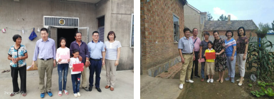 为了使资助的小学生健康成长,9月15日,学院党委13名教师党员代表利用周末休息时间赴滨海陈涛镇,分成4个小组,来到陈涛村、郭集村、友联村、吉龙村、辛庄村,对资助的贫困家庭进行入户走访慰问。在走访中,党员们与小学生进行了深入的交流,详细询问他们在学校的学习情况、家里的生活情况,鼓励他们好好学习、健康成长。此次家访,学院党员给贫困家庭孩子送去了新学年的资助费用,也给孩子们带去了学校出版社资助的课外读物,不仅对贫困孩子进行物质上的关怀,更给予他们精神上的慰藉和鼓励。学院党委今后将继续加强对贫困孩子的资助,并采取以支部与贫困孩子“一对一”结对帮扶的形式,让每一个贫困学生在充满爱心的关怀下,快乐地成长。