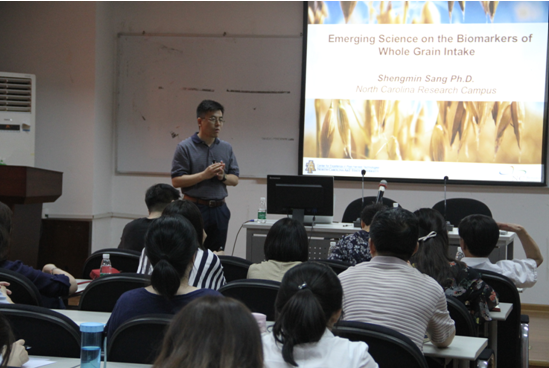 201867日下午14:00-16:00美国北卡农工州立大学终身教授、南京师范大学食品学科讲座教授桑圣民为博彩网址大全 师生带来了精彩的学术讲座,讲座题为Emerging Science on the Biomarkers of Whole Grain Intake