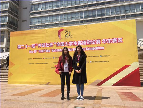 冯婧华和蒋婕代表博彩网址大全 参加第21届“外研社杯”全国英语辩论赛华东赛区的比赛取得佳绩