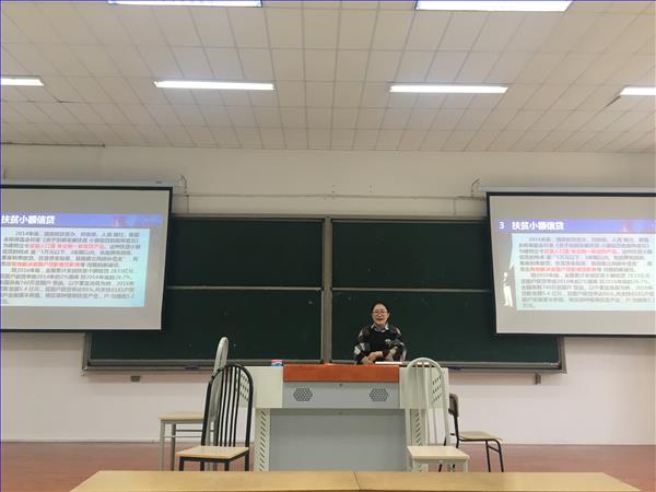 班的同学也不甘示弱,进行了有深度的展示。许欣怡小组向大家分享了“我国开征遗产税的必要性和可能性”,指出开征遗产税的必要性有增加财政收入、平均社会财富、削弱遗产继承观念三点。接着王迪和洪昊敏小组以“精准扶贫,不落一人”为主题对精准扶贫的含义、原因、典型案例、方向和实施进行了详细的说明,解读党的十九大中提出的“坚决打赢脱贫攻坚战”概念并介绍了我国将统筹做好“引进来”和“走出去”。最后周韵小组根据习近平总书记在党的十九大报告中指出的“深化投融资体制改革,发挥投资对优化供给结构的关键性作用”阐释了我国投资体制平台与历史沿革等四大方面的投资体制。活动的最后同学们爆发了雷鸣般的掌声。