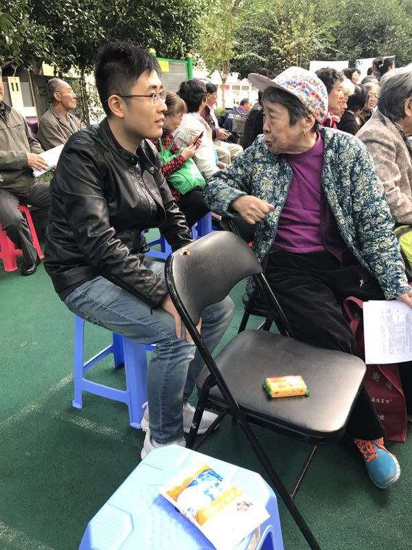 经过实习小组同学们的细致安排与认真实践,这场校外实习活动获得了极大成功。会场设在社区内的小广场,设计精美、内容翔实的展板与易拉宝成功吸引了社区居民的兴趣。小组成员分工明确、合作顺利,与在场的爷爷奶奶积极互动,给爷爷奶奶们发放了相关调查问卷,帮助同学了解爷爷奶奶的具体的情况,从而更好地给出相关回答,问卷正面是印着南京最新的医保政策,方便阅读。在认真地倾听了爷爷奶奶们的故事之后,我们从此次活动中获得了很多有价值的数据。