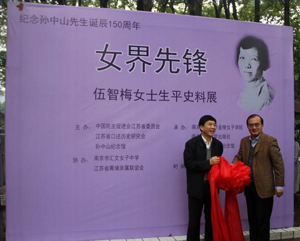 2016年10月31日上午9:30,《女界先锋——伍智梅女士生平史料展》开展仪式在我校随园校区举行,此次活动旨在纪念孙中山先生诞辰150周年,缅怀孙中山的追随者、宋庆龄的好友伍智梅女士。