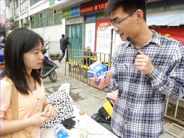 活动当天,下着蒙蒙细雨,在社区的大力支持下,食品与营养协会成员们进行营养宣教的热情倍增,同学们利用自己所学的专业知识为社区居民详细介绍如何挑选蛋奶、牛奶的杀菌方式并普及了生活中的一些营养常识,耐心解答社区居民咨询的相关营养知识。