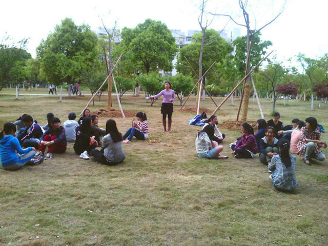 第二个环节就开始进入主题。同学们按照原来自分的两个组围成圈坐下:“十三生肖”和“十二心作”,每个组又分为A、B两个圈:内圈与外圈。不明目的的同学们听着冯老师的指令行动:A圈同学对B圈说一分钟话,B圈同学不给任何反应;B圈对A圈说两分钟话,A圈给予非语言回答;A圈和B圈同学交流三分钟。当三个小环节结束,冯老师让大家分享感受。同学们感受到了交流的魅力,认识到了沟通的真正内涵,沟通只有双向交流才能进行得顺畅,让人感觉到轻松、自然。