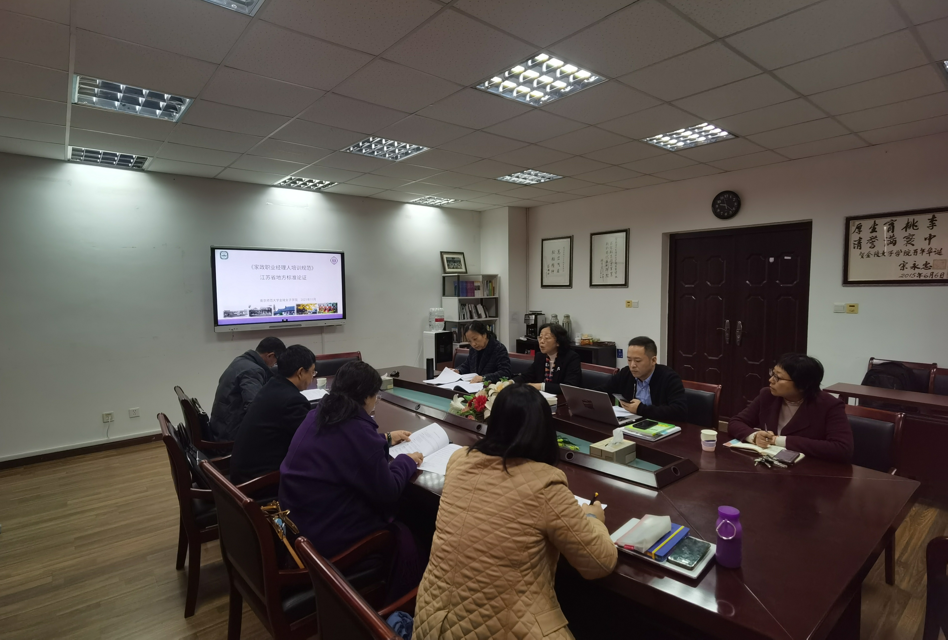 赵媛院长首先介绍了项目进展情况。为贯彻落实《标准化法》《江苏省标准监督管理办法》,加快构建符合高质量发展需求的标准体系,促进标准有效供给,江苏省市场监管局积极推动江苏省地方标准项目建设工作。“家政职业经理人培训规范”项目的开展,是希望通过对江苏省家政服务业的发展状况、家政职业经理人的状况、家政服务业的培训状况的具体调研,了解家政服务业及其职业经理人的现实需求,在此基础上,对家政职业经理人培训拟定具体规范,促进家政服务业规范化标准化发展。本项目从9月份启动开始,项目组进行了大量的资料信息收集、整理与分析工作,形成了“家政职业经理人培训规范”编制框架及初稿,内容包括:范围、规范性引用文件、术语和定义、培训内容、培训教材、培训机构、培训师、培训组织、培训档案、继续教育、培训评估、培训管理等。会议中,大家对编制框架及其中的具体内容展开了深入讨论,提出了很多富有建设性的意见。