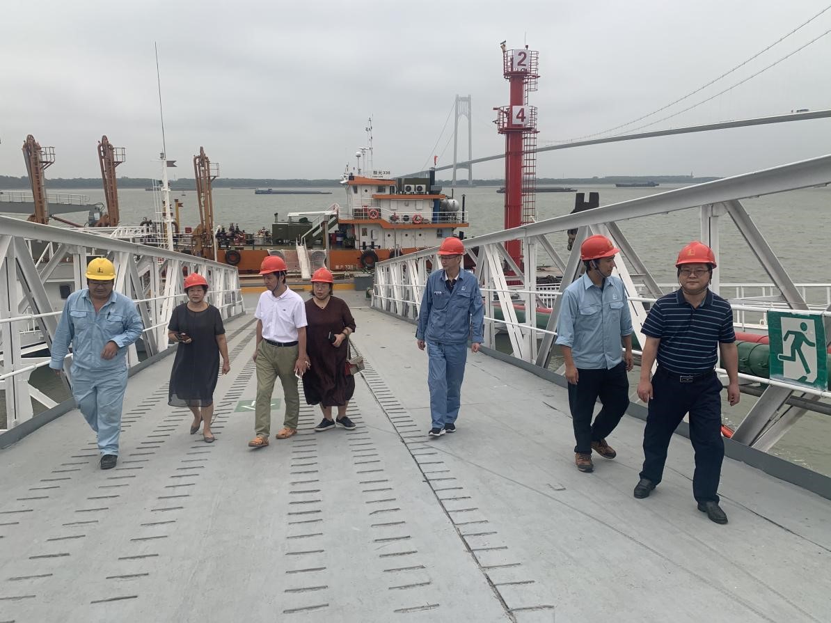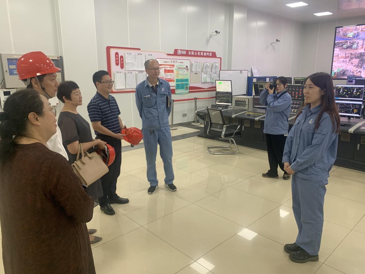 在金陵石化人力资源部主任郭志璜的陪同下,博彩网址大全 党委书记薛传会、院长边霞一行首先参观了金陵石化8号码头、金陵石化主控室、金陵石化厂区。