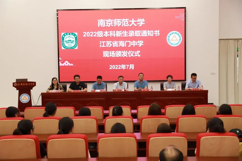 7月26日下午,南京师范大学2022级新生录取通知书江苏省海门中学现场颁发仪式在海门中学弘謇楼会议室顺利举行。南京师范大学党委常委、副校长张序余,博彩网址大全