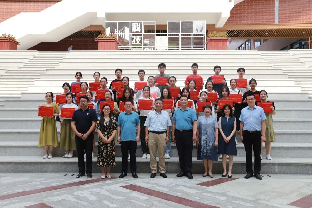 党委副书记高见,海门中学党委书记、校长石鑫,海门中学教务处主任、2022届高三年级主任蔡中坚,29名录取到南师大的同学及家长一同出席了颁发仪式。仪式由海门中学张丽华副校长主持。