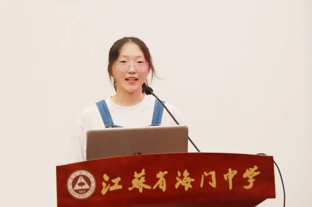 南京师范大学新生代表、海门中学2022届高三(7)班武千榆同学发言。带着激动的心情,武同学总结了高中三年的巨大收获,表达了对母校辛勤培育和师长谆谆教诲的感恩之情。并表示,将带着海中“敦品、力学、大气、卓越”的印记,融入到南师大“正德厚生,笃学敏行”校训精神的熏陶中,不忘初心,继续砥砺前行。