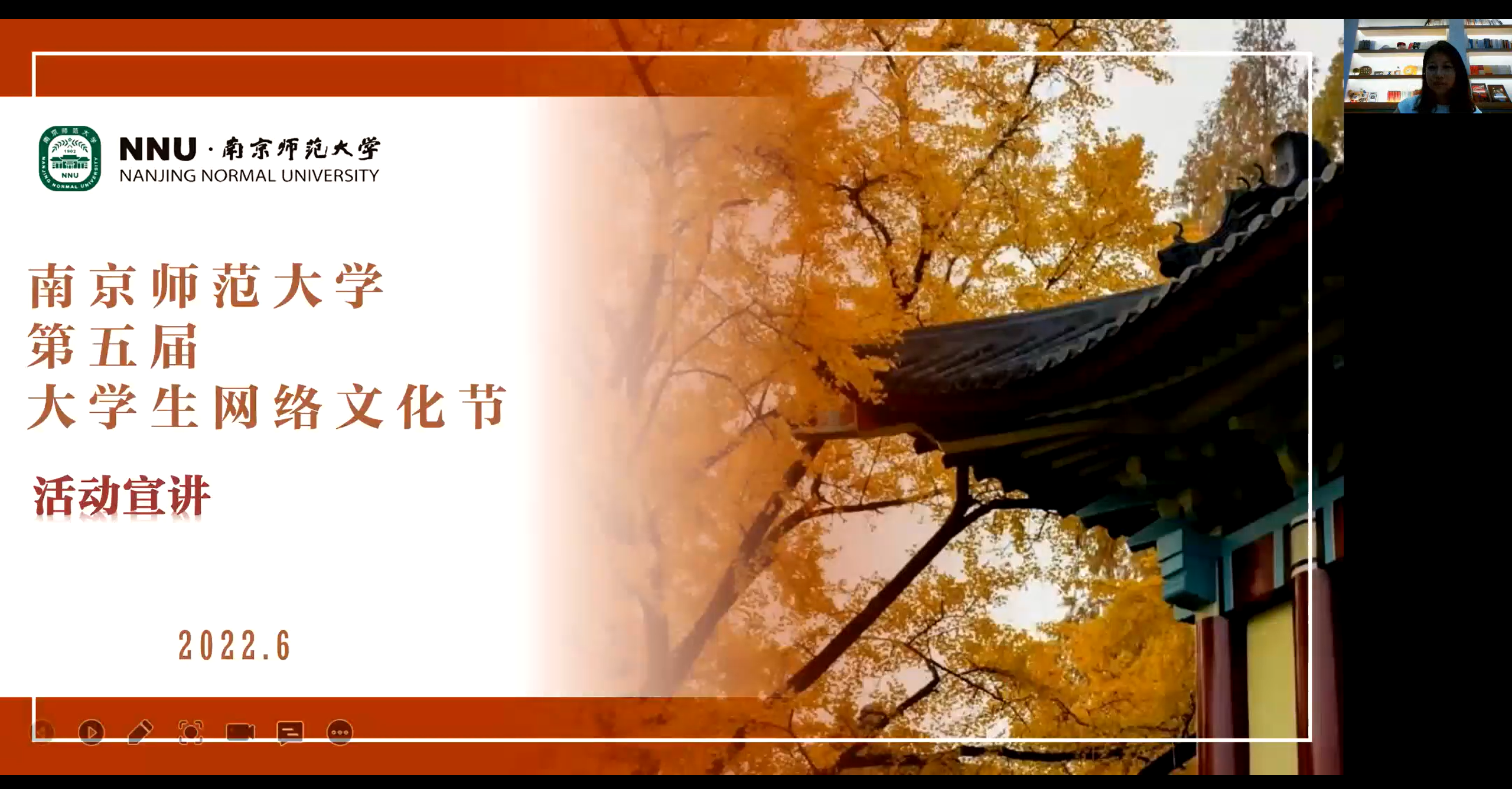 线上举行南京师范大学第五届大学生网络文化节专场宣讲会,特邀请组织参与往届大学生网络文化节省赛和校赛的学工处思想教育科科长吴希媛老师、第五届全国大学生网络文化节音频作品一等奖获得者新传院21级研究生苗艺晗、江苏省大学生网络文化节网文作品一等奖获得者博彩网址大全