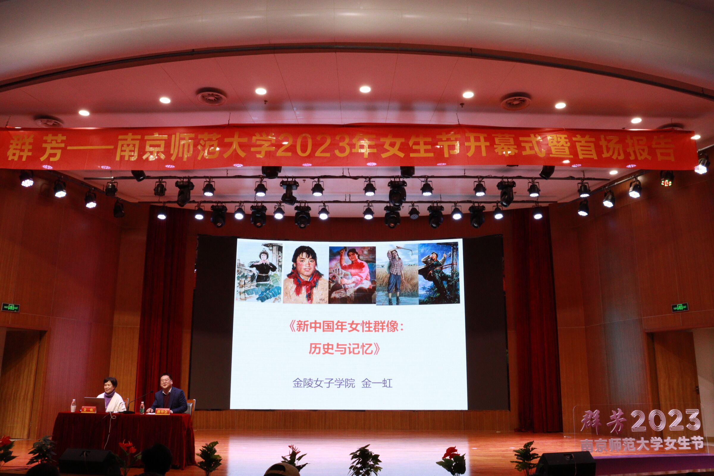 的金一虹教授为现场观众带来主题为“新中国女性群像:历史与记忆”的首场报告。金老师寻访在中国现代化进程中的女性历史足音,描绘了新中国女性群像。从女性青春叙事的角度,聚焦了在不同时代、不同岗位女性的“青春”与“成长”的话题。金教授以动人的事迹寄语青年学子:不负韶华,砥砺前行,把自己的青春和生命与祖国的发展繁荣联系起来,为中华民族的伟大复兴事业贡献巾帼力量!