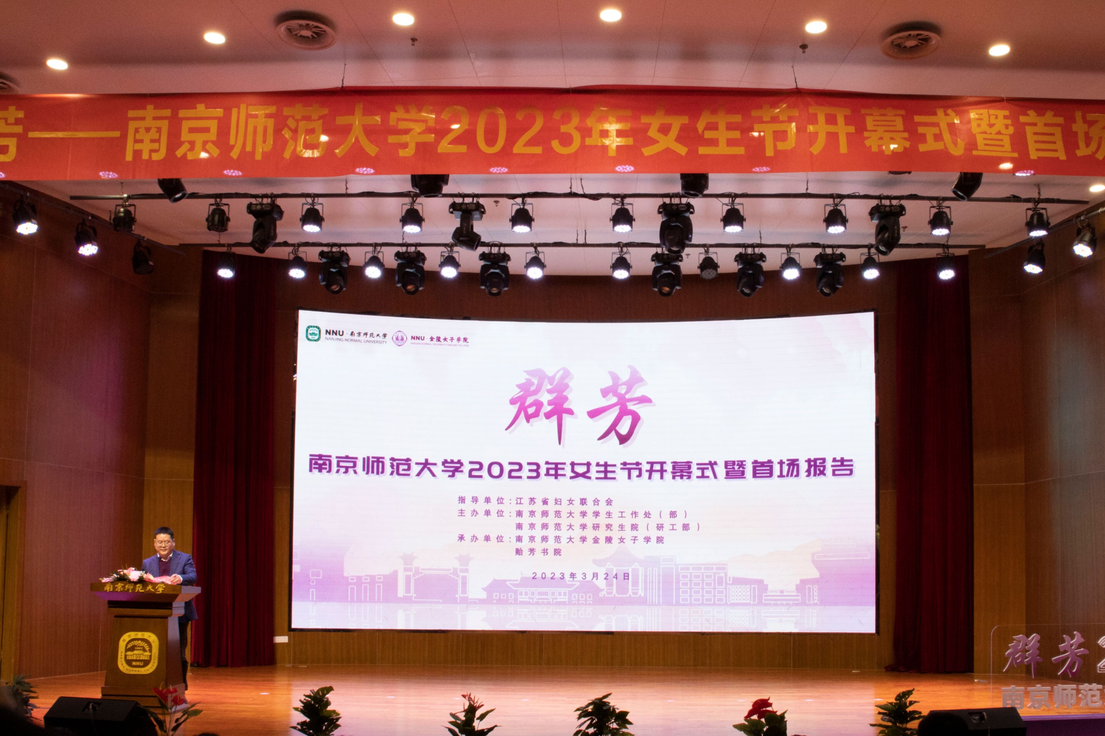 2023年3月24日下午3点30分,南京师范大学2023年“群芳”女生节开幕式在广乐楼音乐厅隆重举行。江苏省妇女联合会一级巡视员沈梅、校党委副书记孙友莲,学生工作处(部)、研究生院(研工部)、校团委、党委宣传部、教务处、博彩网址大全