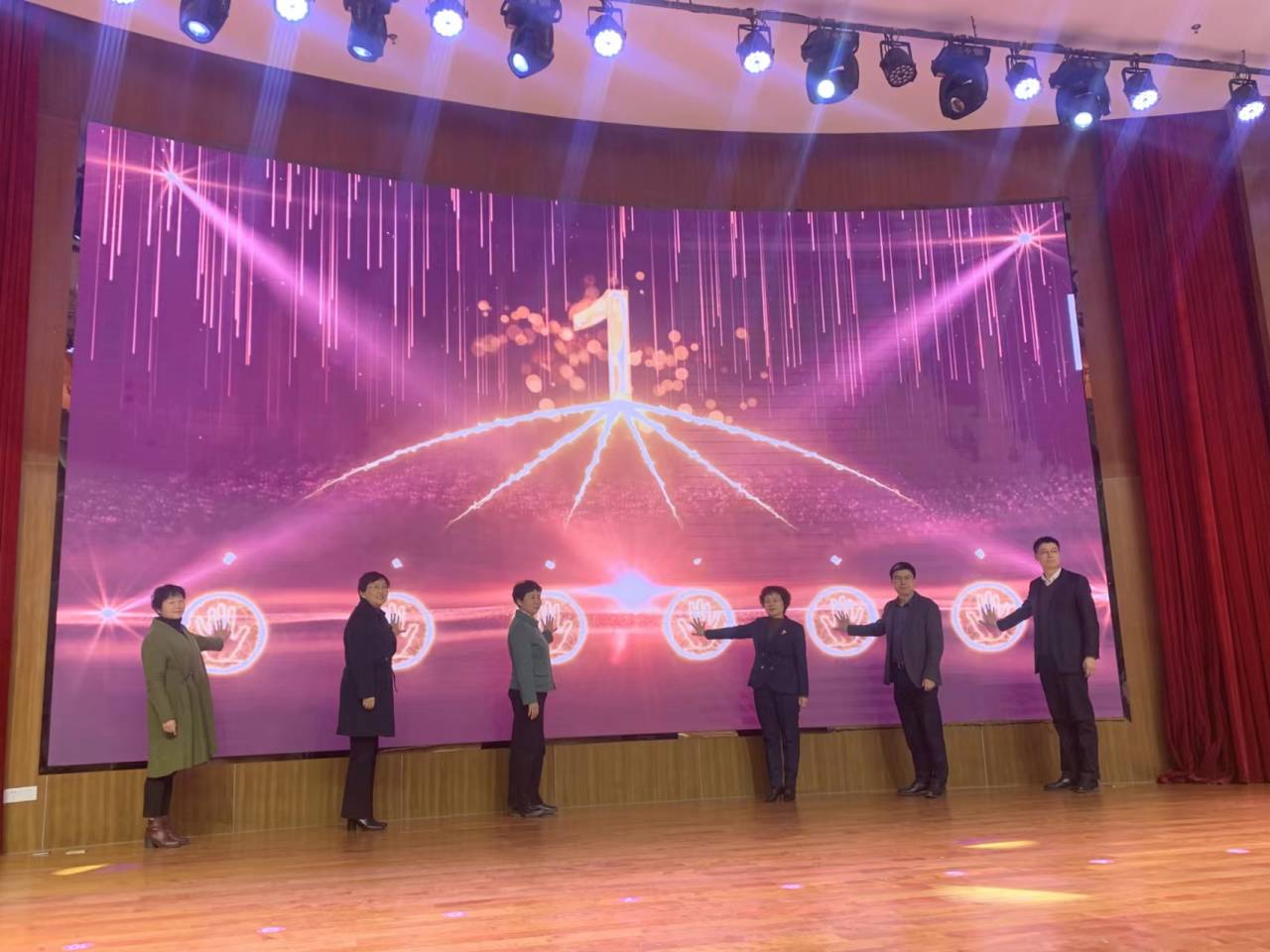 院长边霞共同触摸大屏手印,启动开幕式。群芳——南京师范大学2023年女生节正式开幕。