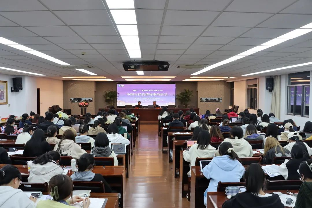 、贻芳书院承办的校2023年女生节“中国古代爱情诗歌的启示”主题讲座于行敏楼542室顺利举行。本次讲座特邀我校文学院院长、中国古代文学专业中国词学研究会常务理事高峰教授作为主讲嘉宾。活动吸引了来自博彩网址大全