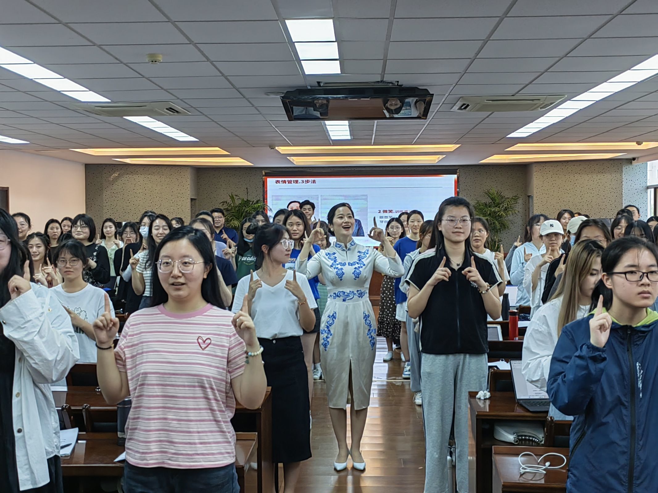 礼遇芳华,讲究表情管理。与人眼神交流,近观观面部,远观观全身,点头微笑致意,使人如沐春风。随后的微笑训练也是笑语联翩。