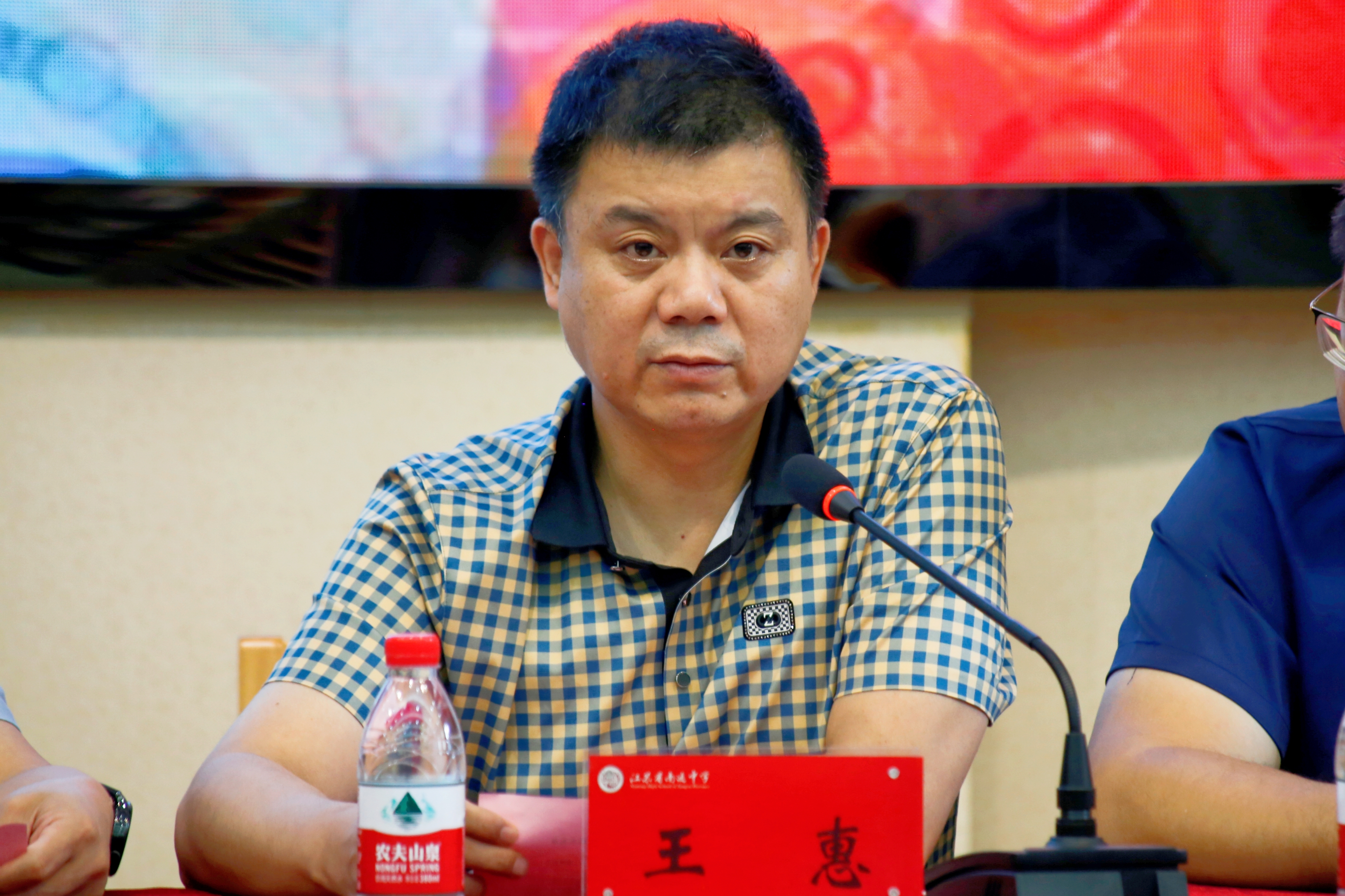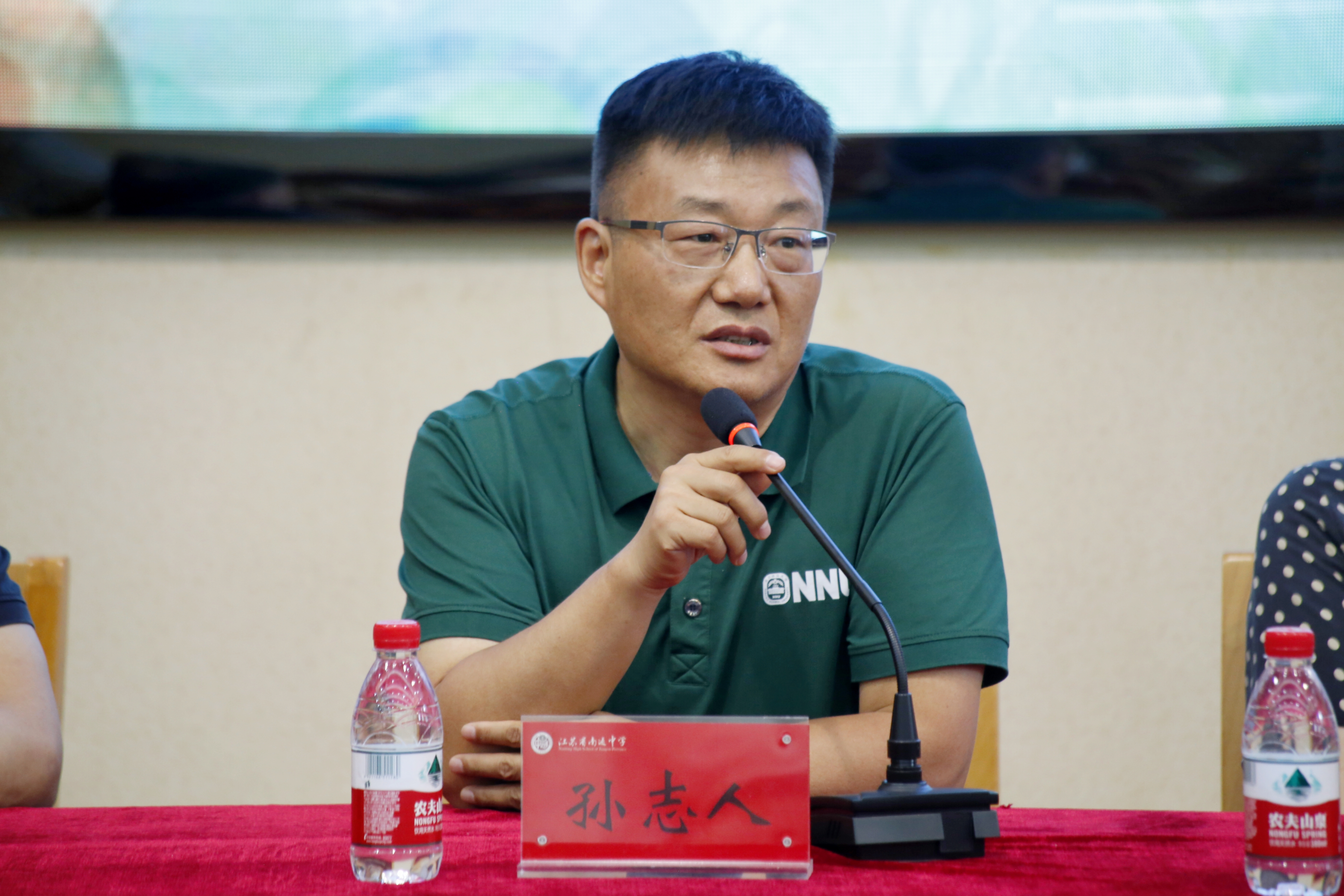 南通中学校长陈建云致欢迎辞。在表达了对南师大领导亲临通中的感谢和对53位录取到南师大同学的美好祝愿后,陈校长回顾了南京师范大学与南通中学在人才培养上积极友好合作的历史,寄语现场同学要继承南通中学和南京师范大学的优良传统,接续奋斗,在人生的新阶段跑出优异成绩,并祝愿两校友谊长存。