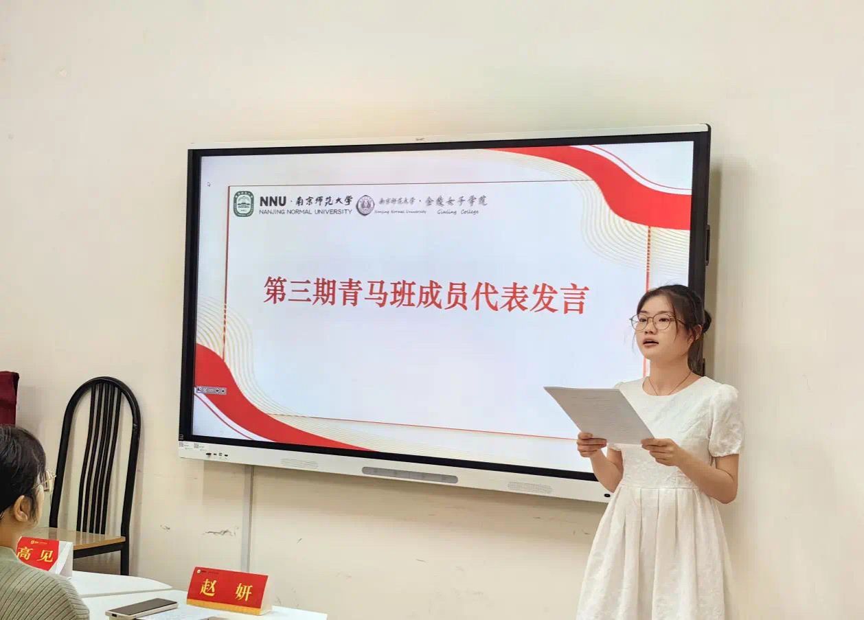 仪式第三项议程,洪培妍同学作为第三期青马班成员代表发言。首先,她表达了对青马班认知和理解,抒发了对未来青马班的学习生活的憧憬之情。接着,洪培妍同学提出几点建议与同学们共勉,明确了未来的学习目标。最后,她希望和三期学员们共同成长,潜心求学、坚定信念、心怀高远。