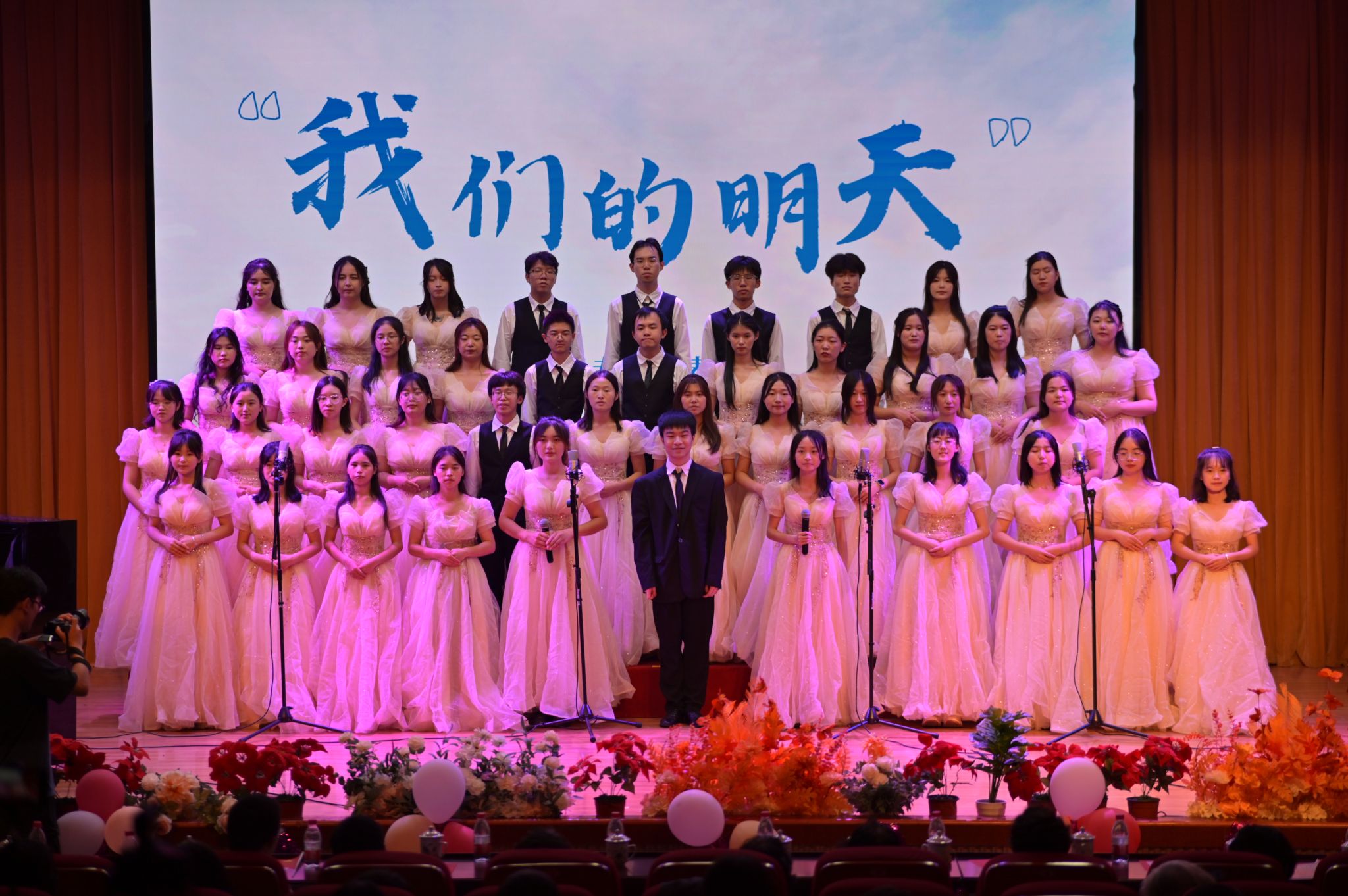 劳保专业代表队带来《金陵的儿女欢聚一堂》与《我们的明天》,同学们饱满的精神面貌展现了独属于金陵儿女的风华意气,金陵儿女将传承厚生精神,以己身作国家基石,铸就更好的未来。英语专业代表队带来《Sing-a-ling-a-ling》和《Should Auld Lang Syne》两首英文歌,悠扬的歌声诉说着对吴贻芳老校长的崇敬和怀念,让人忆起百年前老校长不惧时局艰难,举力兴办教育的壮举。